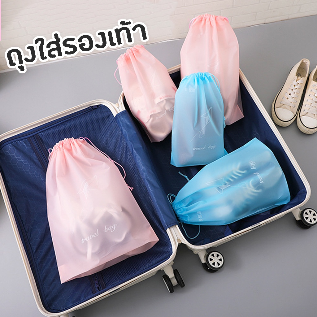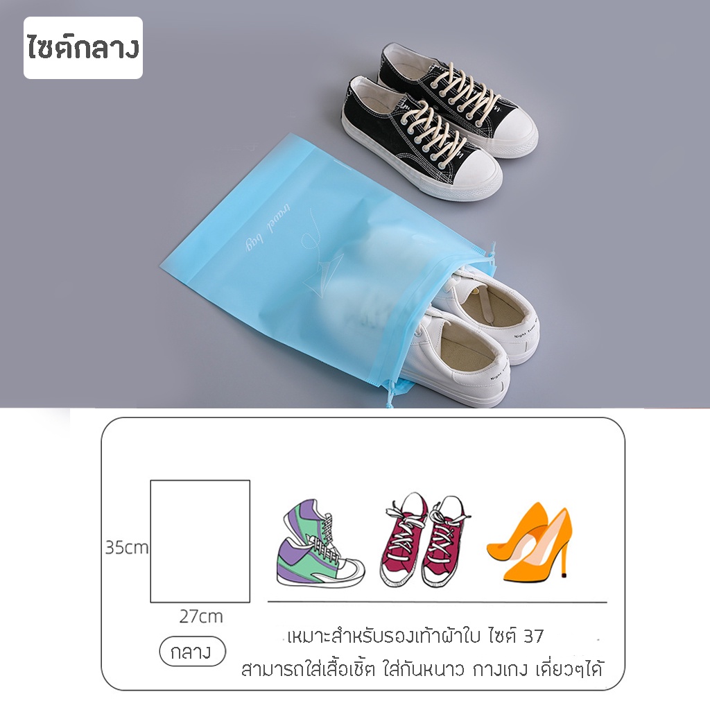 ถุงผ้าใส่รองเท้า เก็บรองเท้า ถุงป้องกันฝุ่น มีสายรูดปิดปากถุง ห้อยแขวนได้