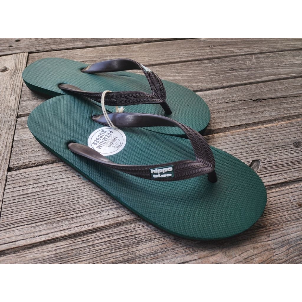 รองเท้าแตะ hippobloo สีเขียวหัวเป็ดสายน้ำตาลเข้ม