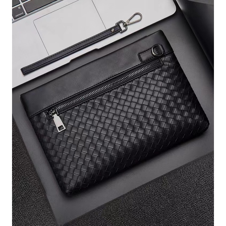 กระเป๋าถือ กระเป๋าคลัทช์ หนัง PU แบบถัก อเนกประสงค์ จุของได้เยอะ สไตล์นักธุรกิจ แฟชั่นสําหรับผู้ชาย