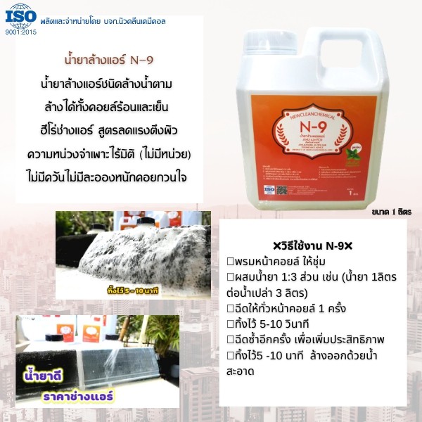 น้ำยาล้างแอร์ ชนิดล้างน้ำตาม N-9 ฮีโร่ช่างแอร์ ขนาด 1 ลิตร