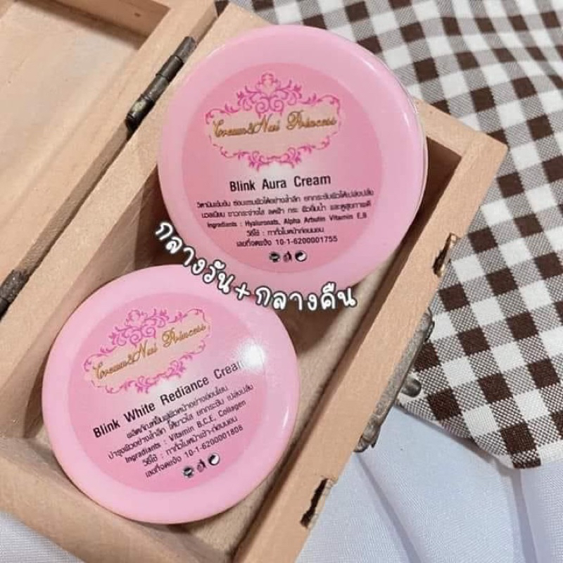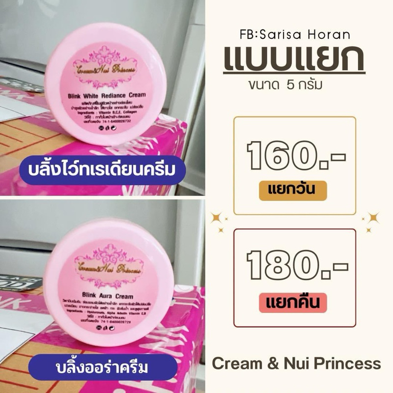 แบบแยกครีมบลิ้งออร่าครีมกลางวันครีมกลางคืน ครีมบลิ้งไวท์เรเดี้ยน สิว ฝ้า กระ จุดด่างดำ (ขนาด 5 กรัม)