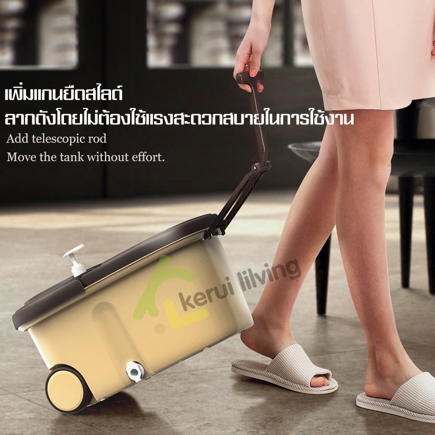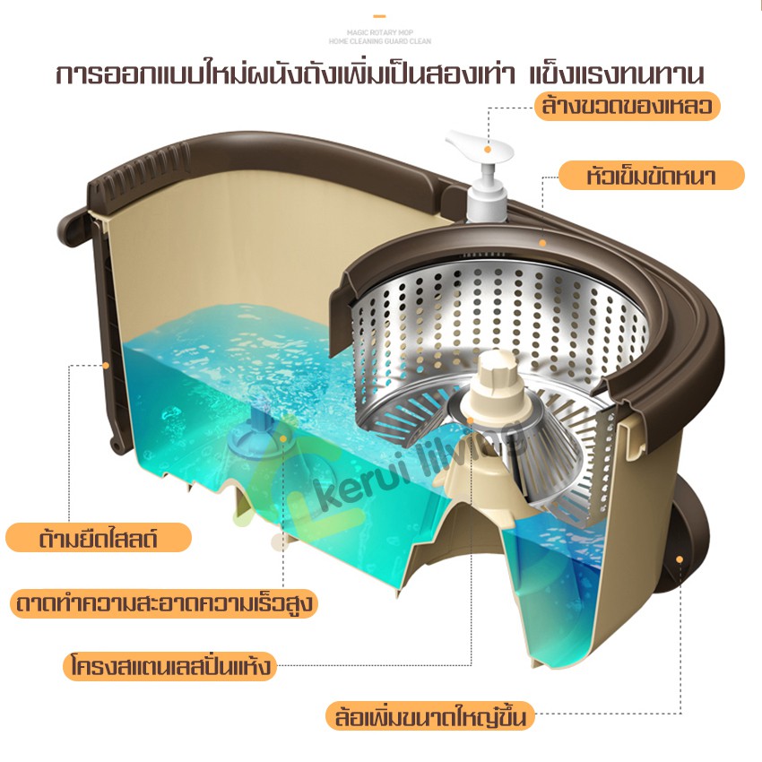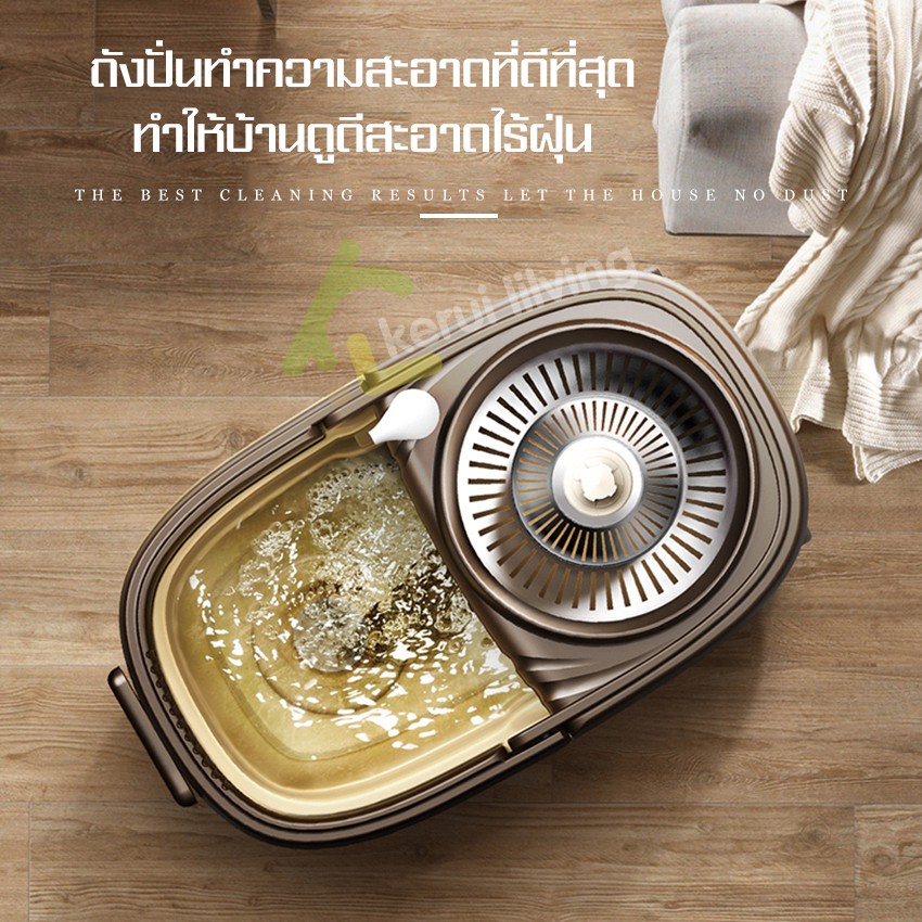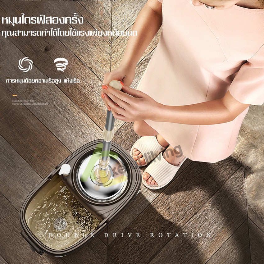 RYBACK ชุดถังปั่นตะแกรงสแตนเลส+ไม้ม็อบ+ผ้าม็อบไมโครไฟเบอร์ ไม้ถูพื้น ชุดถังปั่นไม้ถูพื้น ไม้ม็อบ หมุนได้ 360 องศา