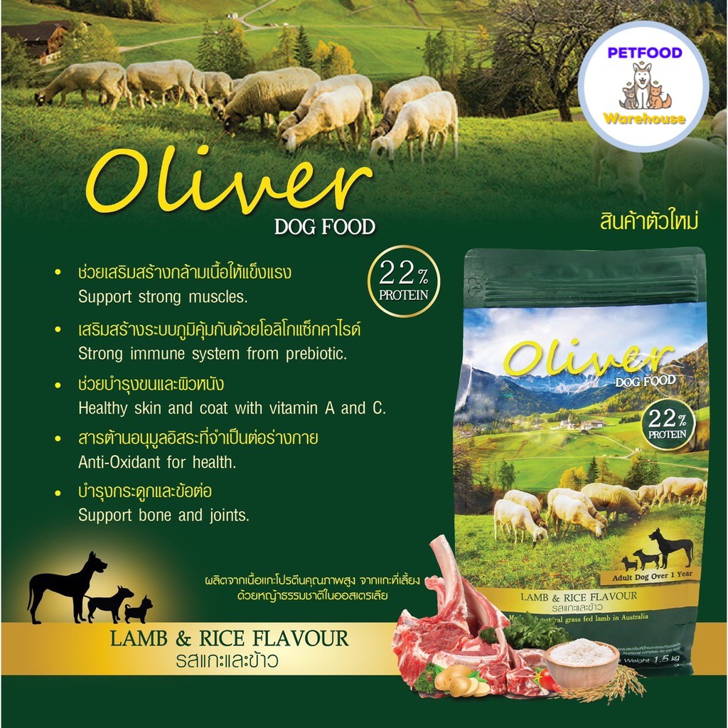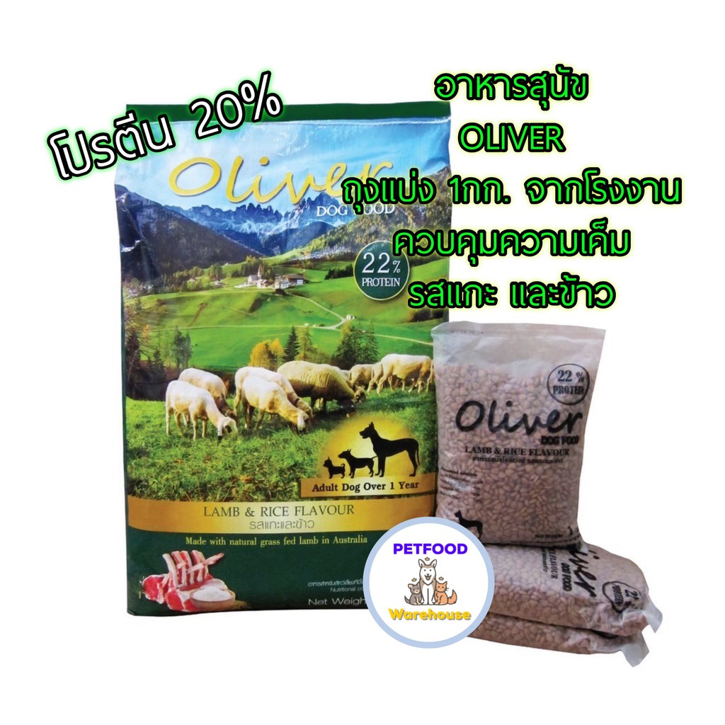 Oliver Dog Food อาหารสุนัข โอลิเวอร์ (บรรจุ 1 กก. ถุงจากโรงงาน) มี4 รส แกะและข้าว แซลมอน พันธุ์เล็ก