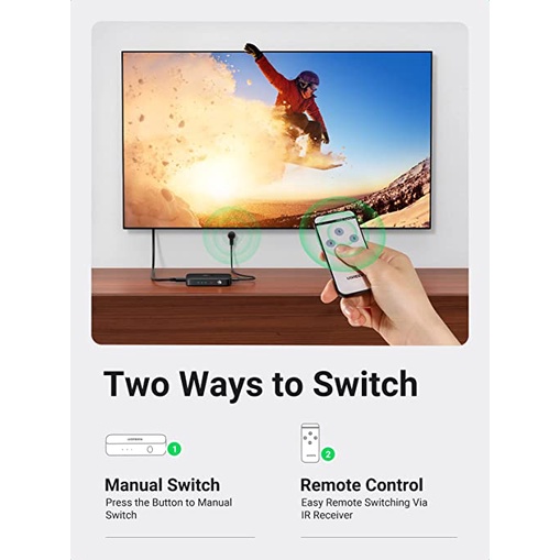UGREEN 80125 HDMI Switch 3 in 1 Out 4K HDMI Switcher Splitter with Remote Control Support 4K 30Hz 3D HD 1080P
