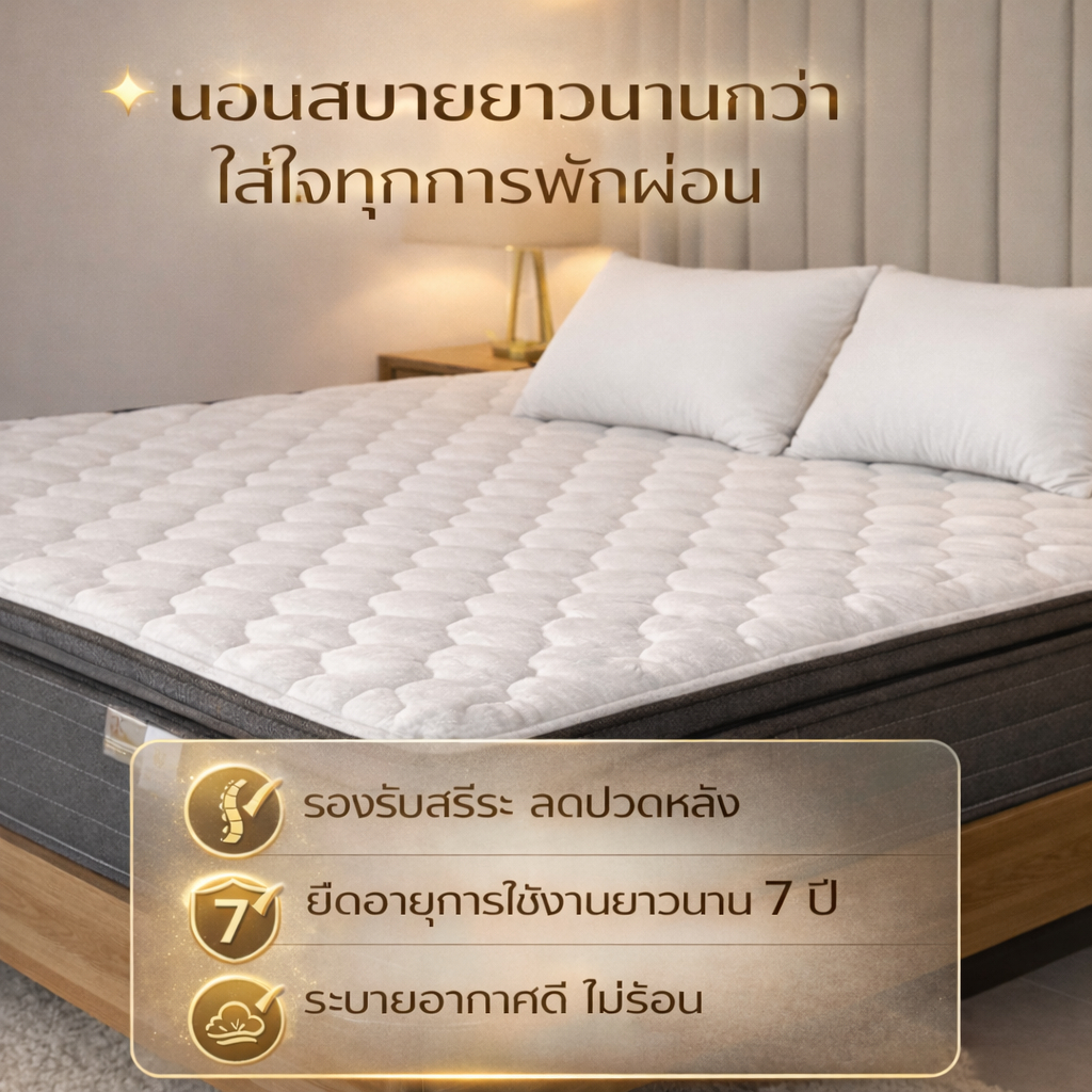 HARMONY ที่นอนสปริง รุ่น Mavista ซัพพอร์ตสรีระ ระบายอากาศดี ลดอาการปวดหลัง หนา 10 นิ้ว รับประกัน 7 ปี 3.5/5/6 ฟุต