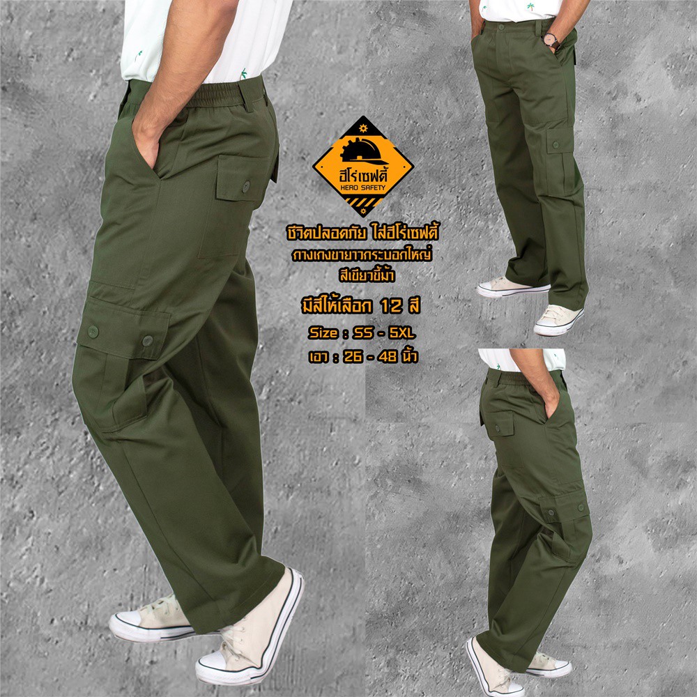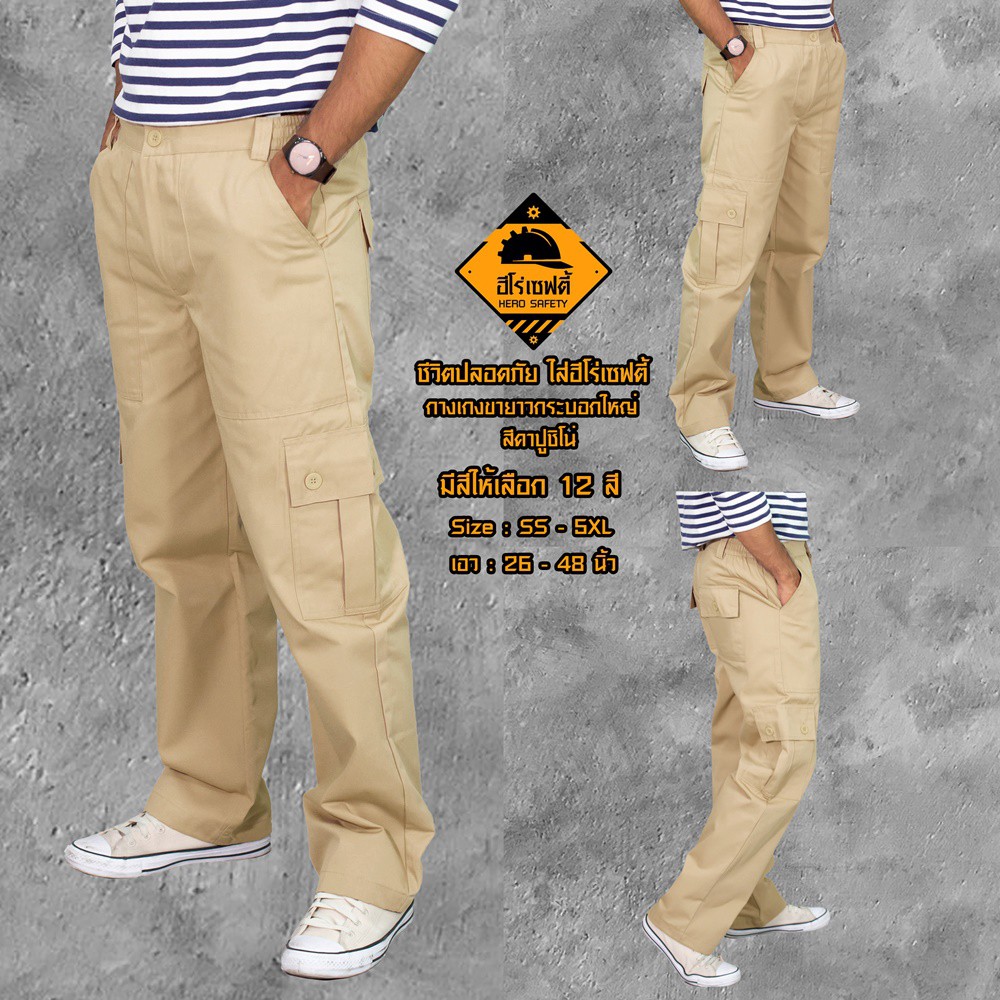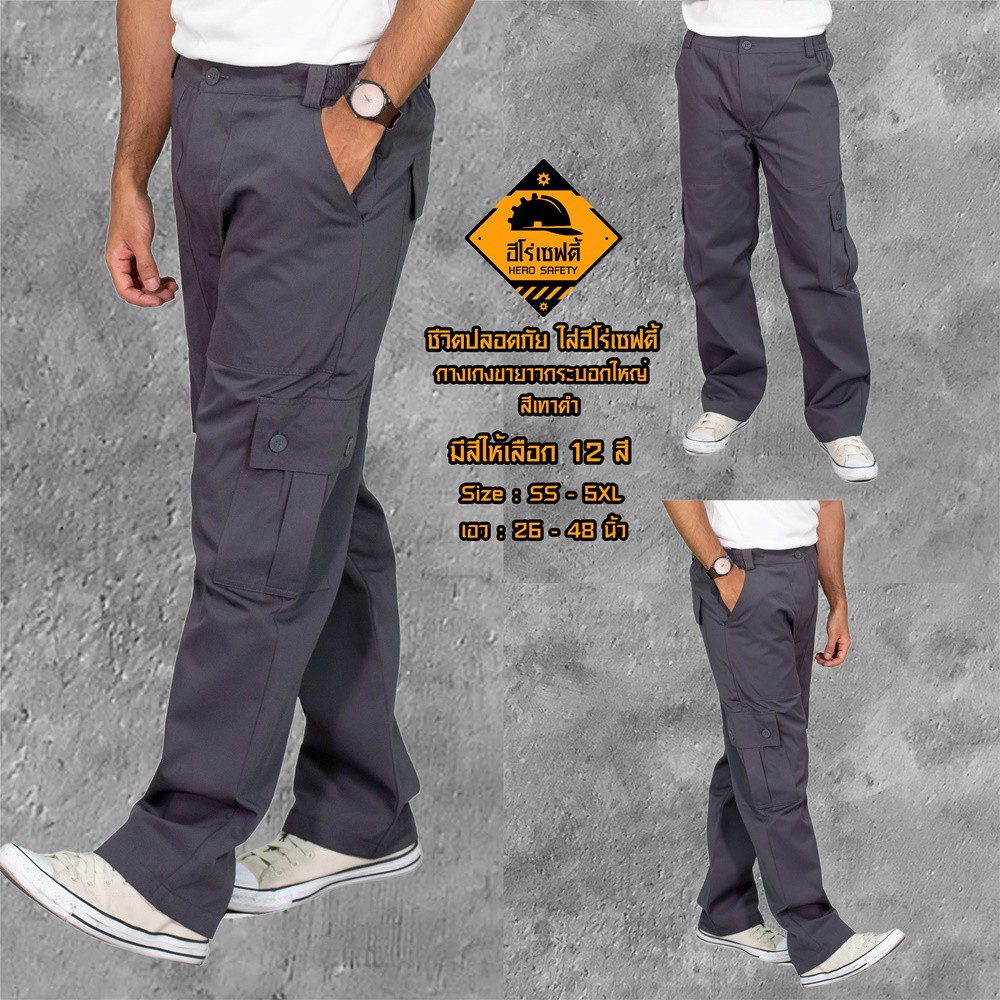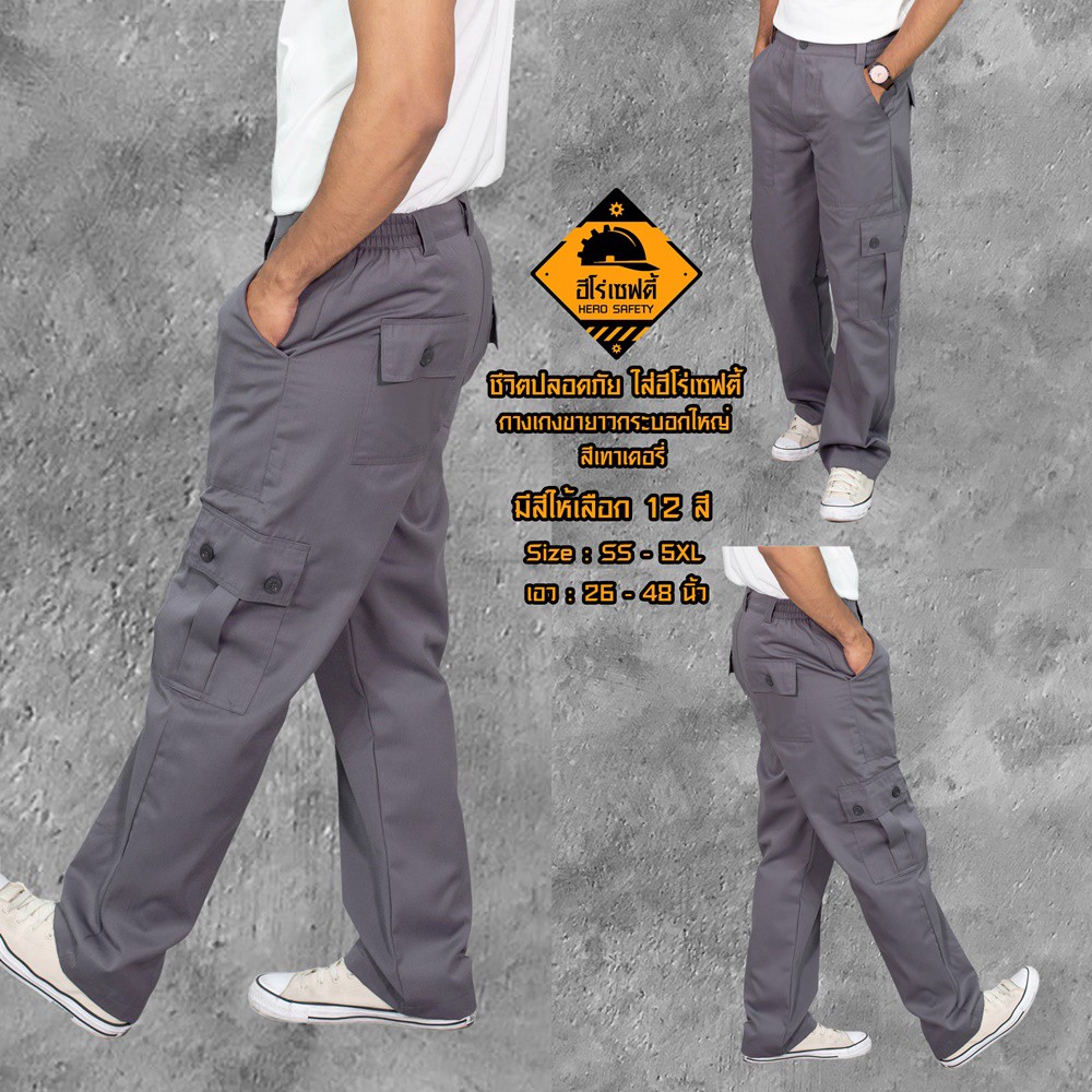 HERO SAFETY :กางเกงคาร์โก้ รุ่น AirForce 6 กระเป๋า กระบอกใหญ่ ขายาว เอว26-42 นิ้ว WORKWEARTHAILAND