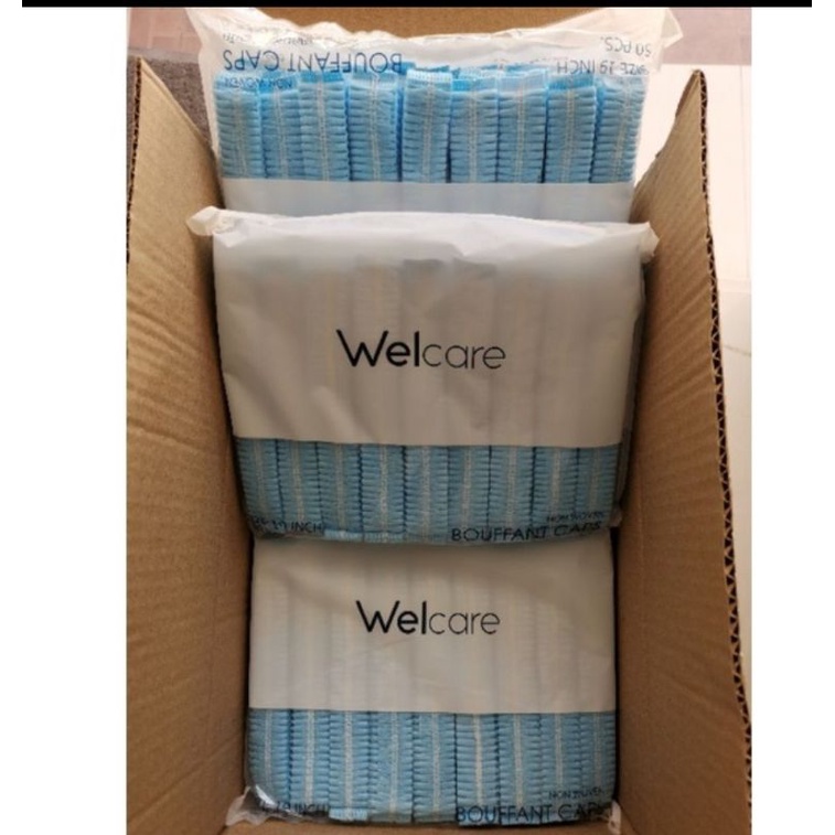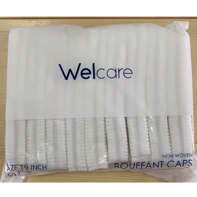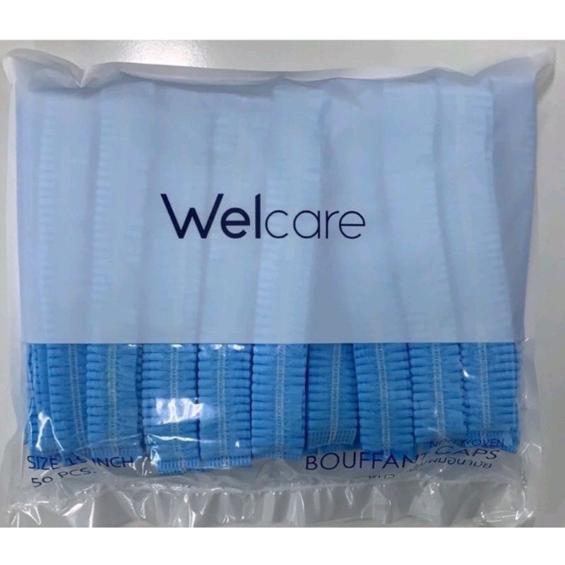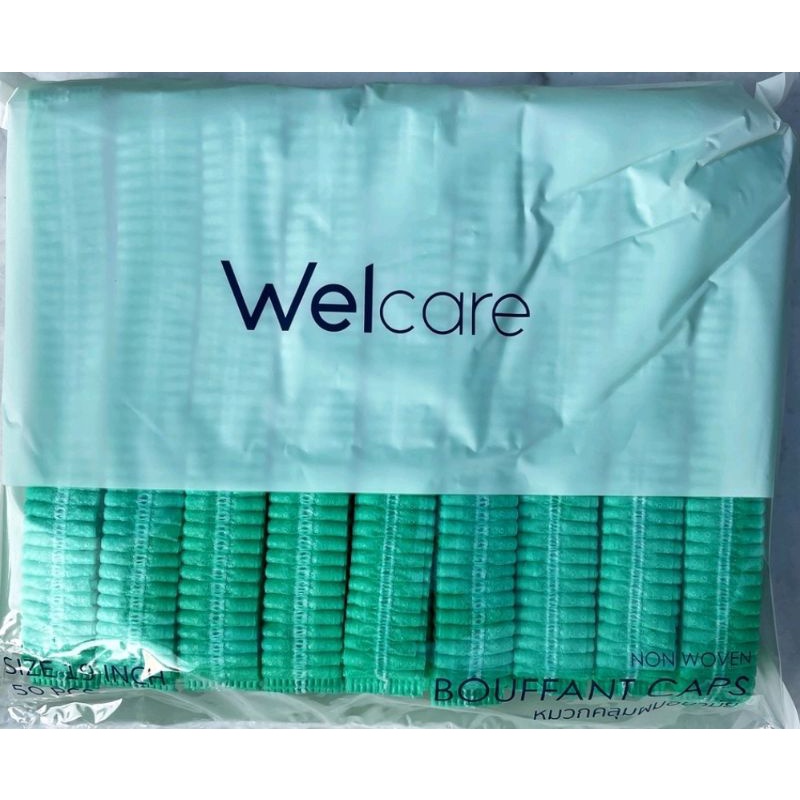 หมวกตัวหนอนWelcare สีเขียว ฟ้า ขาว ชมพู(ราคาส่ง)ขนาด19นิ้ว50ชิ้นต่อแพ็ค