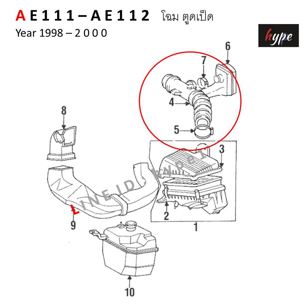 ท่ออากาศ ท่อยางกรองอากาศ AE111 - AE112 โฉมตูดเป็ด ปี 1998 - 2000