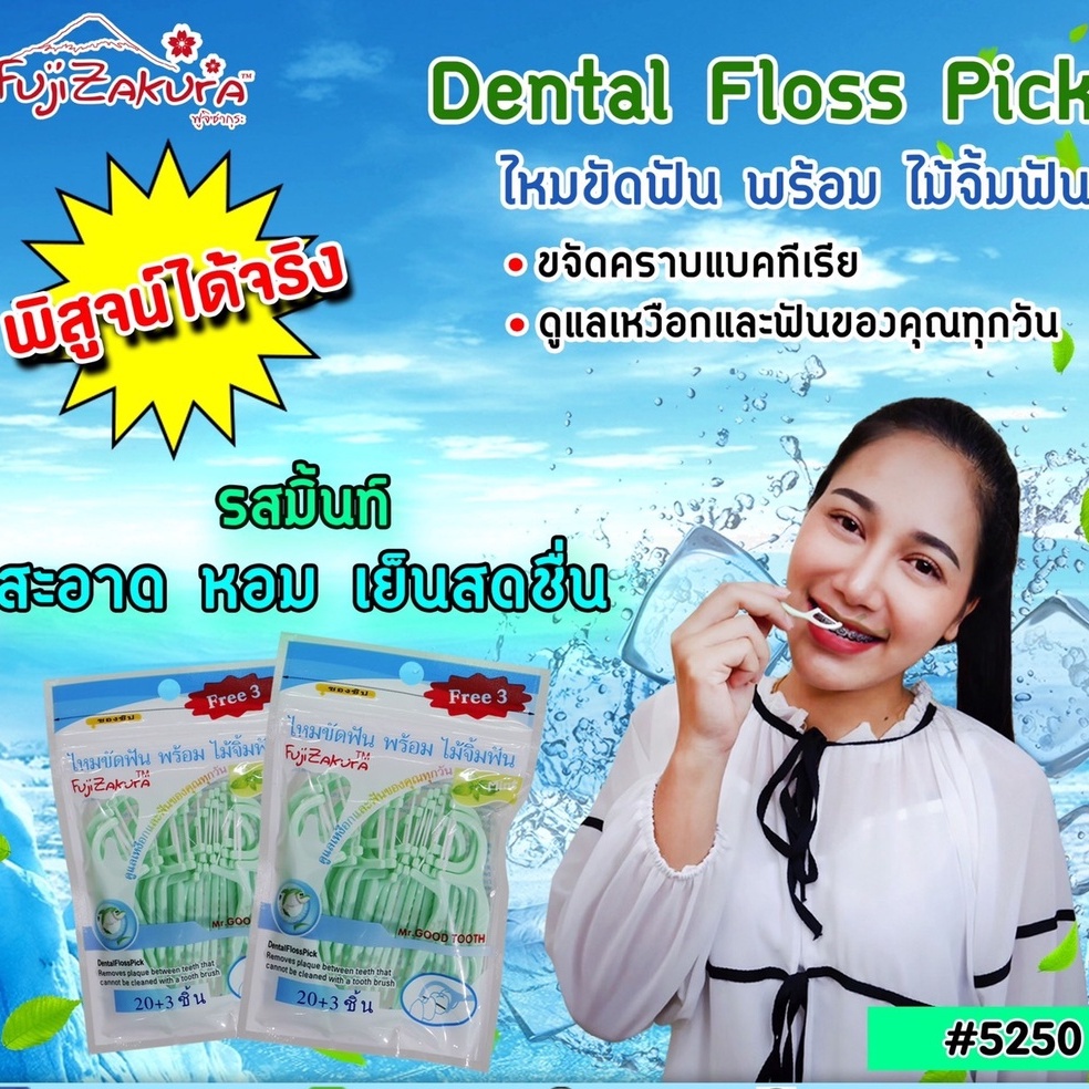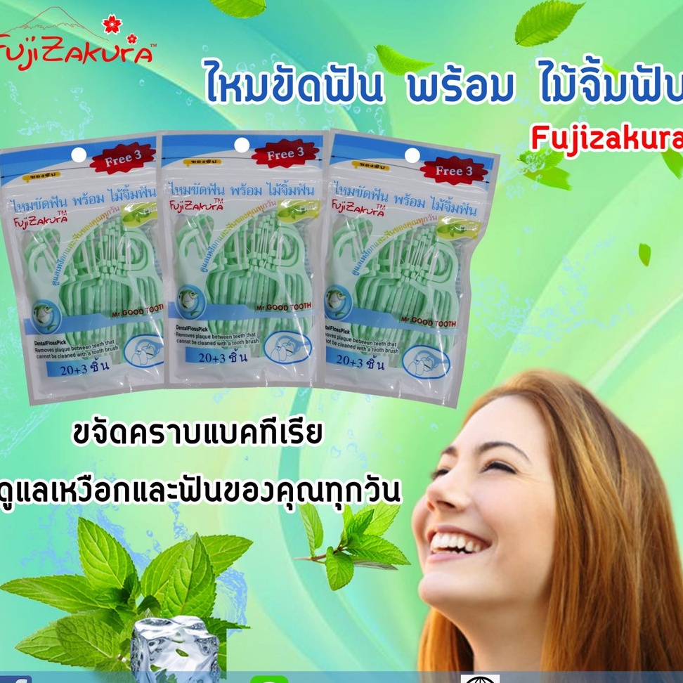 Fujizakura ไหมขัดฟันพร้อมไม้จิ้มฟัน รสมิ้นต์ ฟูจิซากุระ (20ชิน x 18ซอง) กำจัดเศษอาหารที่ติดตามซอกฟันออกได้อย่างหมดจด