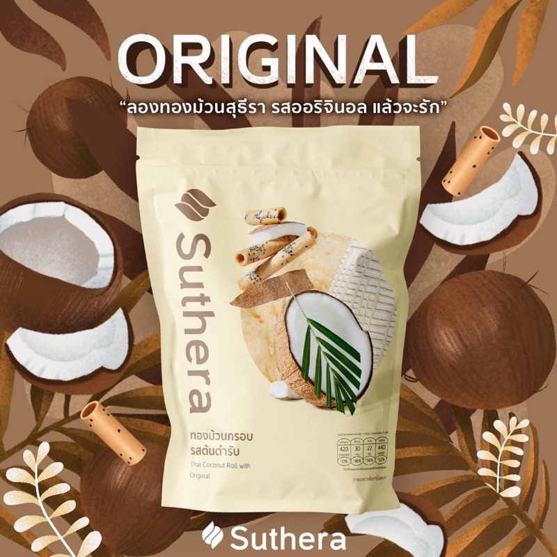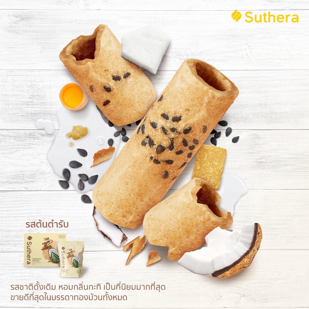 ทองม้วนสุธีรา suthea official รสต้นตำรับ ขนมมงคล ทองม้วนกรอบจากน้ำกะทิสดสูตรโบราณต้นตำรับ (แบบถุง) 70 กรัม
