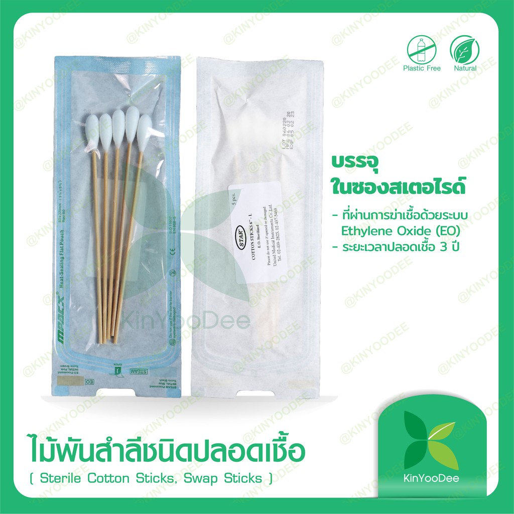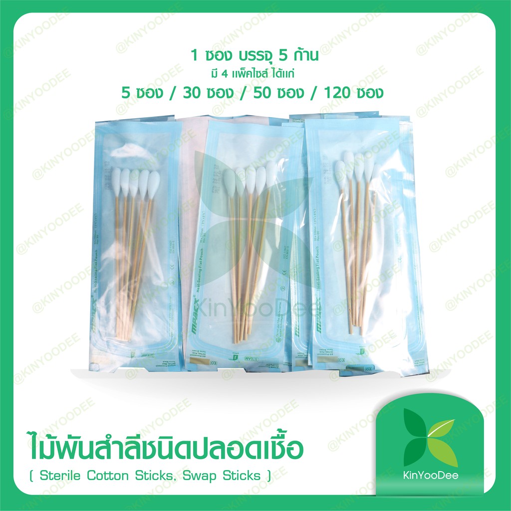 ไม้พันสำลีชนิดปลอดเชื้อ (Sterile Cotton Sticks, Swap Sticks )-แพ็ค 5 ซอง