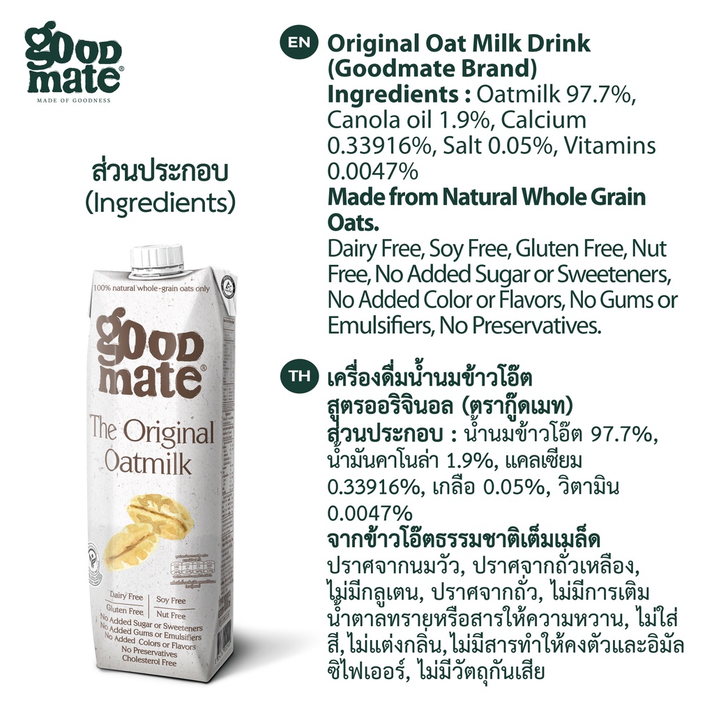 Goodmate The Original Oat Milk กู๊ดเมท นมโอ๊ต สูตรออริจินอล ขนาด 1000 มล. (1 กล่อง)