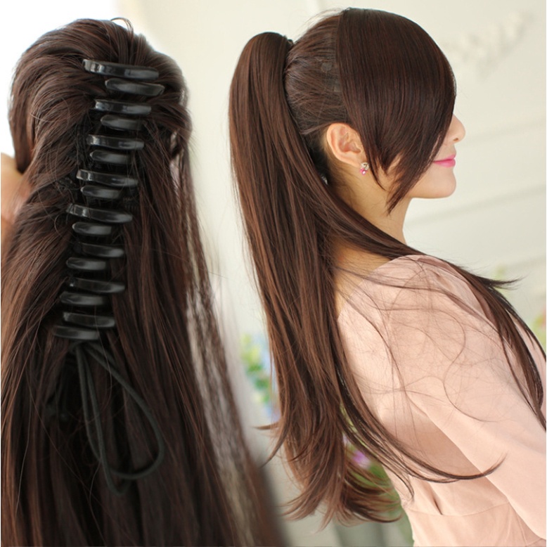 แฮร์พีชหางม้า ผมตรง แบบหนีบ สะดวก ผมสวยใน1นาที ผมนิ่ม ไม่พันกัน เหมือนผมธรรมชาติ ยาว50ซม.