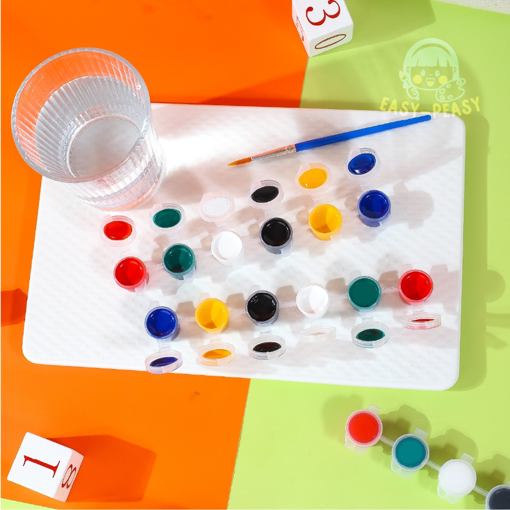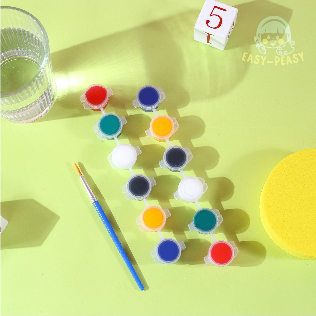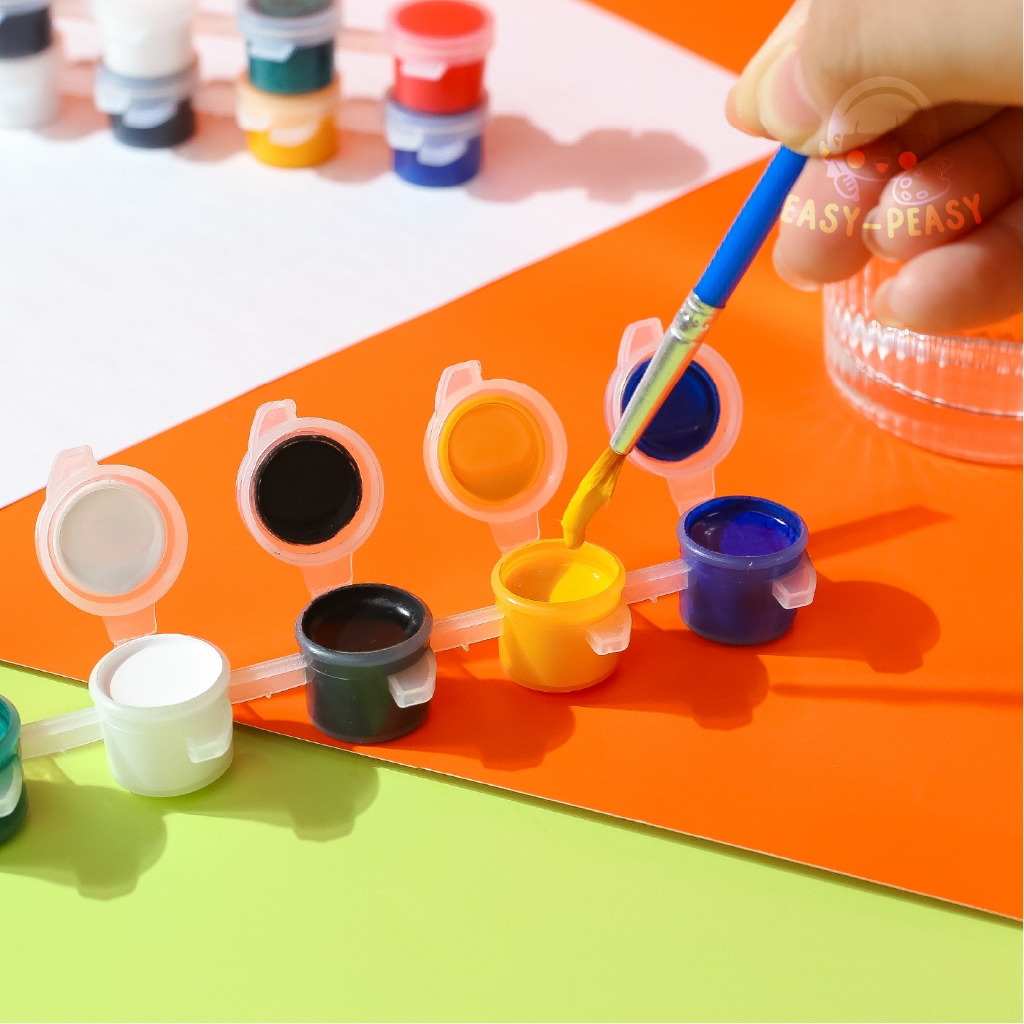 พร้อมส่ง! สีน้ำอะคริลิค 6 สี + พู่กัน กันน้ำ สีแน่น ปลอดภัย ใช้ได้ทุกพื้นผิว