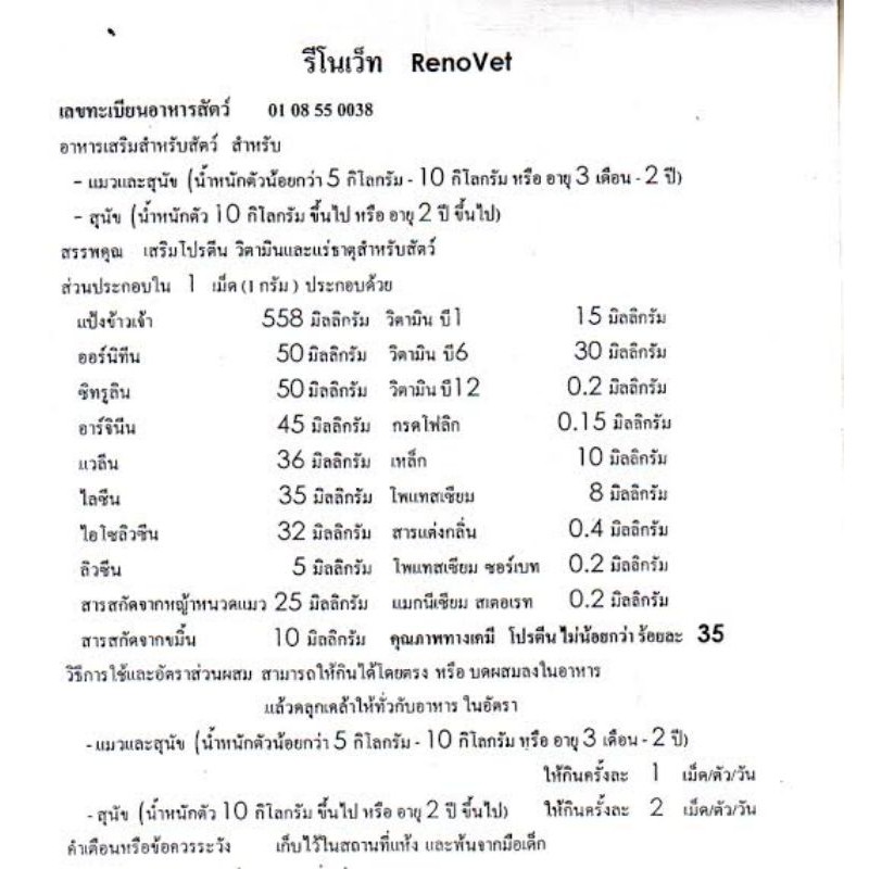 Renovet บรรจุ 100 เม็ด (exp.02/2027) อาหารเสริมบำรุงไตของน้องหมาและแมว