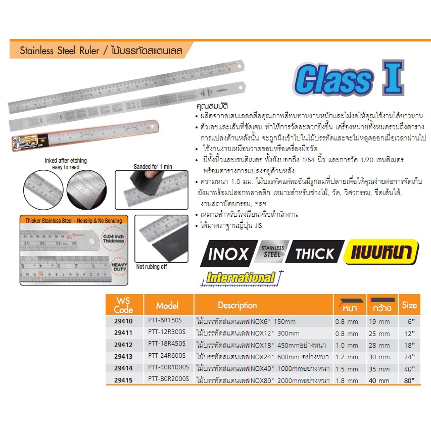 ไม้บรรทัดสแตนเลส ฟุตเหล็ก 6 , 12 , 18 นิ้ว ไม้บรรทัดเหล็ก เมตร ไม้บรรทัด ของแท้ วัดละเอียด Pumpkin Class I JIS INOX