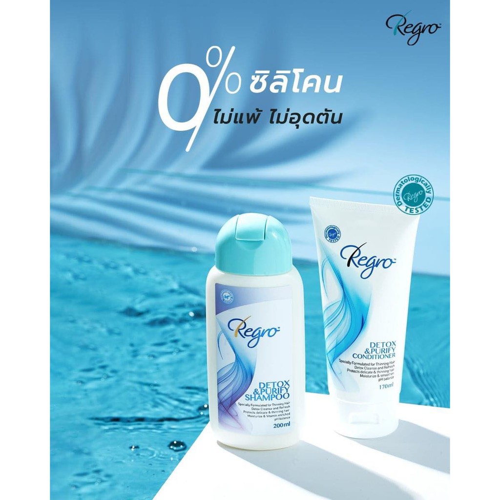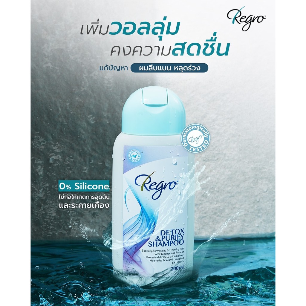Regro detox & Purify Shampoo 100ml.แชมพูทำความสะอาดเส้นผม สูตรดีท็อกซ์ ปราศจากซิลิโคน เหมทาะสำหรับผู้ที่เป็นสิว แพ้ง่าย
