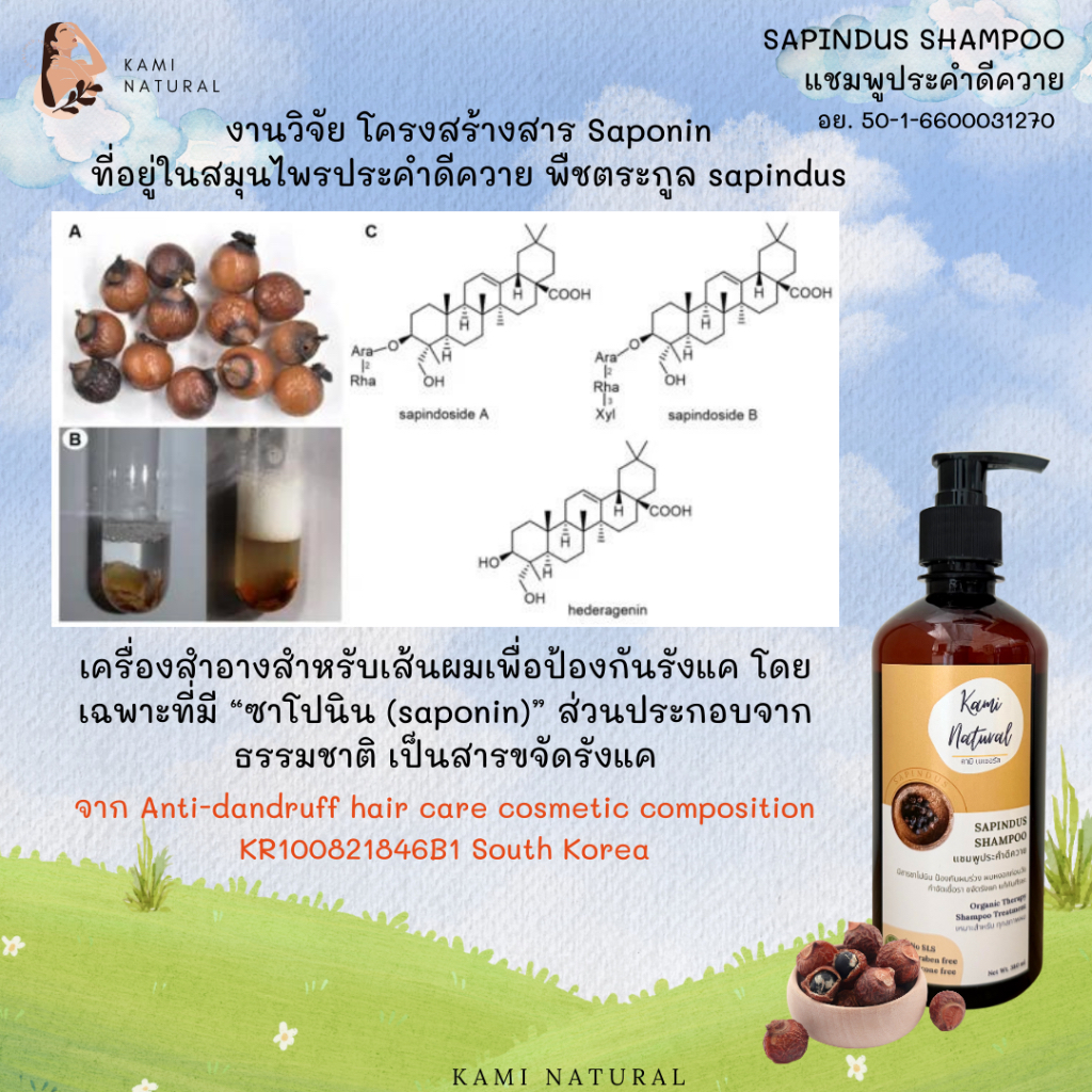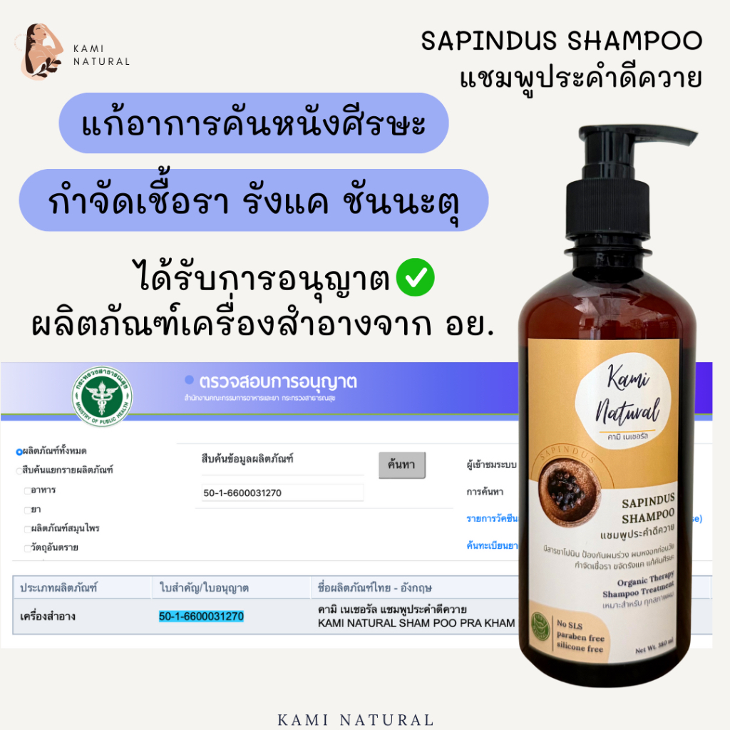 แชมพูสมุนไพร ประคำดีควาย แชมพูลดรังแค ลดเชื้อรา ควบคุมความมัน KAMINATURAL