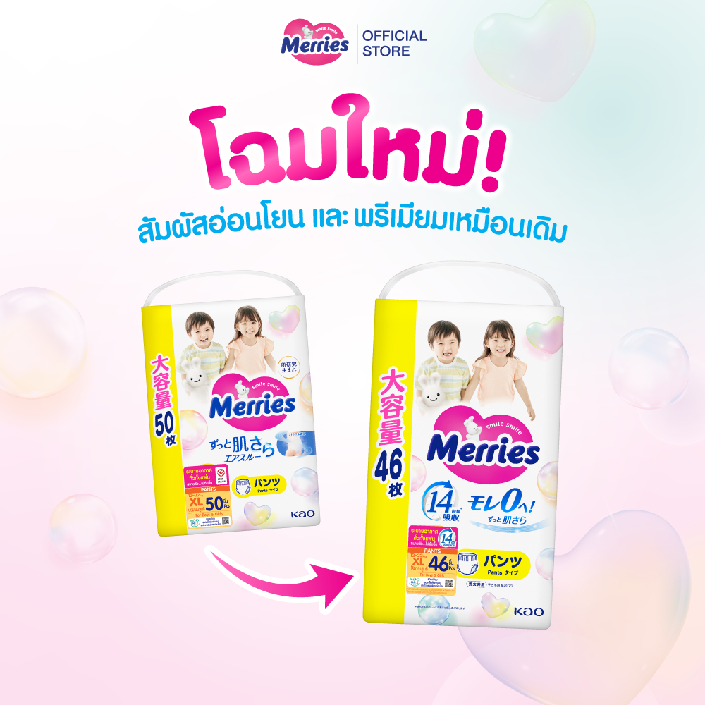 Merries Pants Ultra Jumbo XL 46 pcs. ผ้าอ้อมเด็กเมอร์รี่ส์ชนิดกางเกง ไซส์ XL 46 ชิ้น