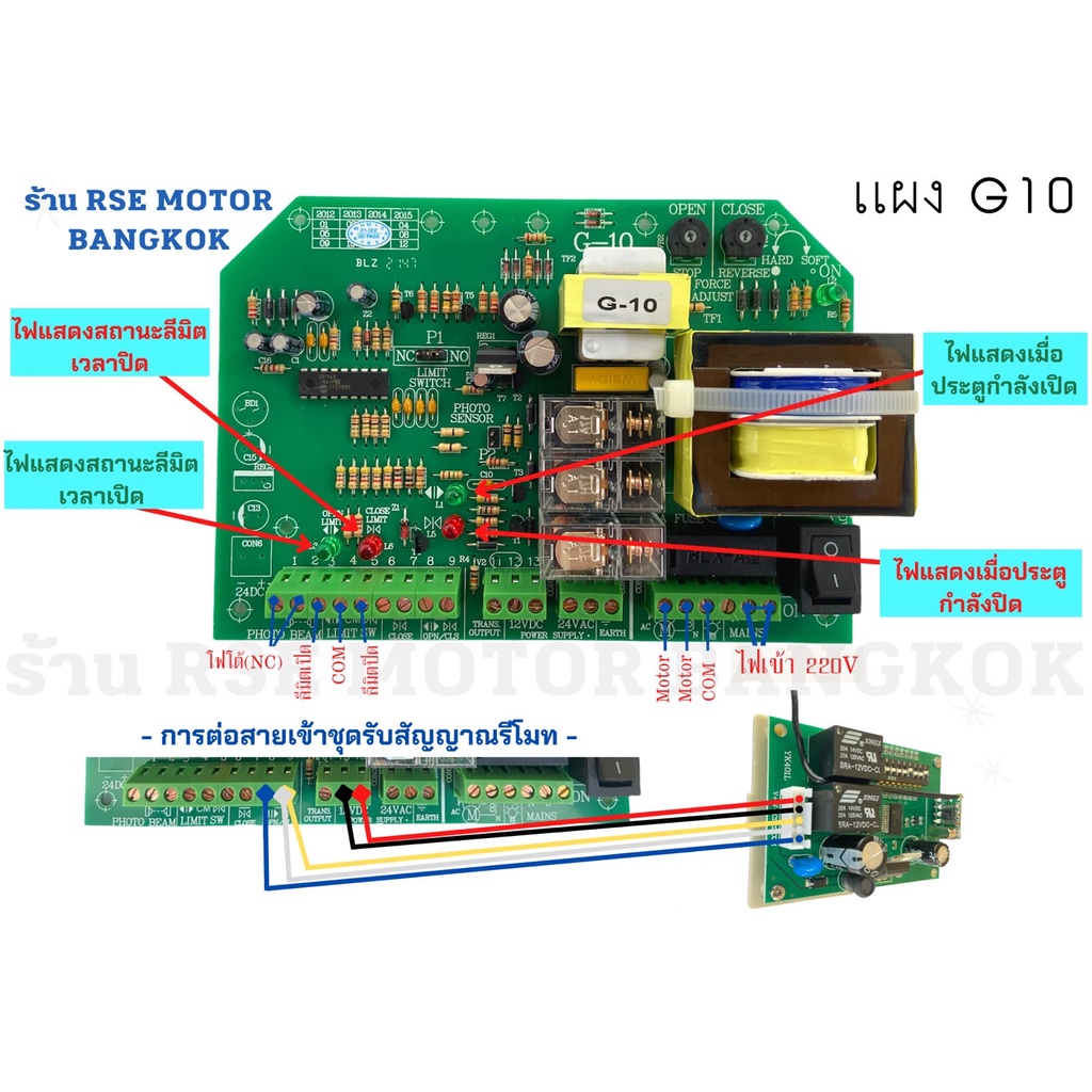 แผงวงจรRSE รุ่นG10 มอเตอร์ประตูรีโมท ประตูเลื่อน กำลังไฟเข้า 220V มีคู่มือการใช้งานให้
