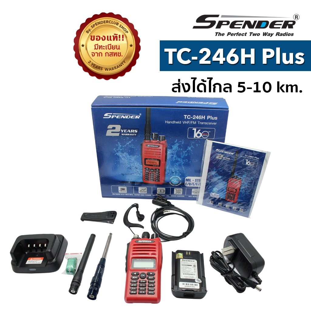 SPENDER วิทยุสื่อสาร รุ่น TC-246H Plus สีแดง กำลังส่ง 5 วัตต์ เครื่องมีทะเบียน ถูกกฎหมาย รับประกันสินค้า 2 ปี