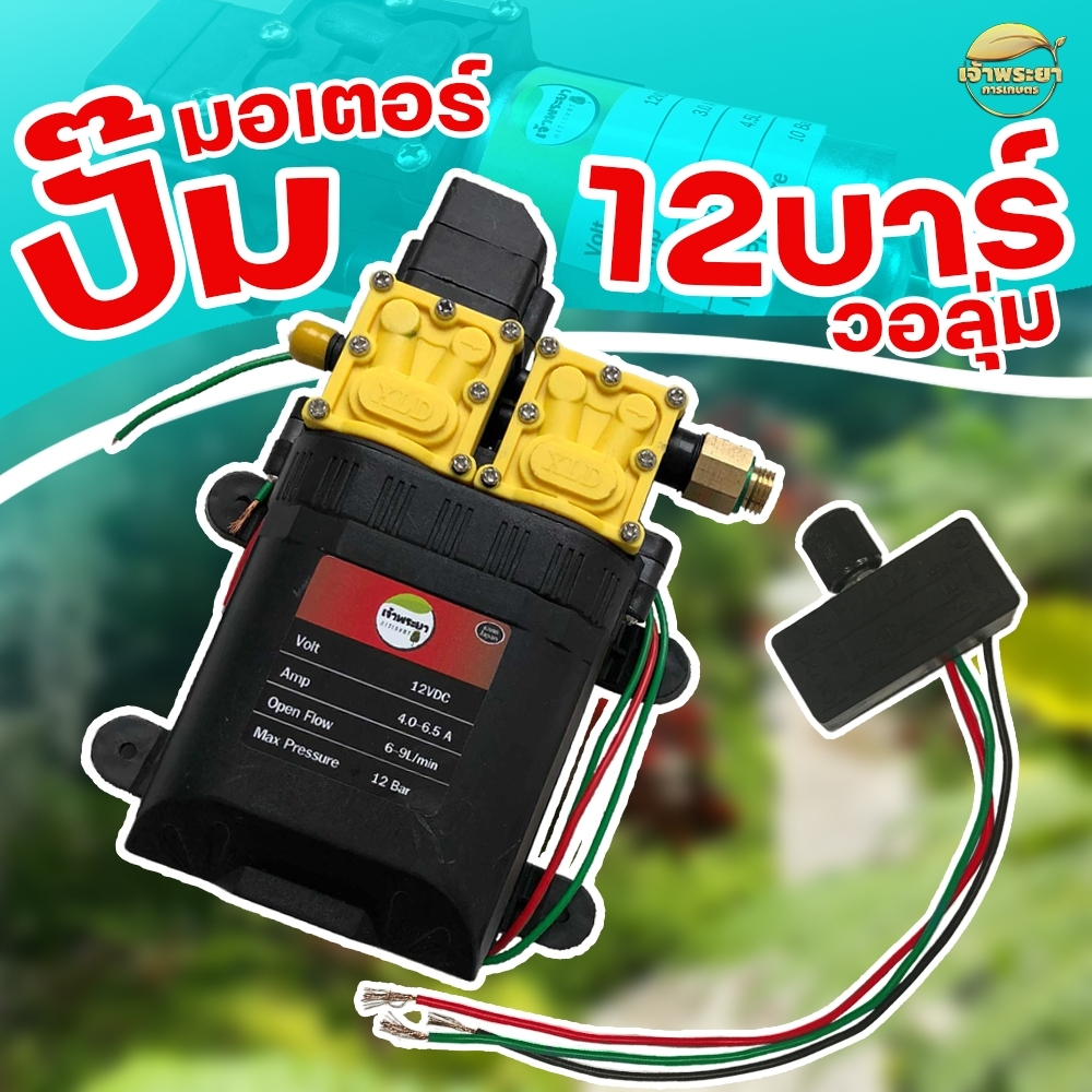 เครื่องพ่นยา มอเตอร์ปั้มพ่นยา 12 บาร์ปั้มคู่ ของแท้ พ่นไกล 12 เมตร ต่อแบตเตอรี่ 12V ได้ถึง 100 แอมป์