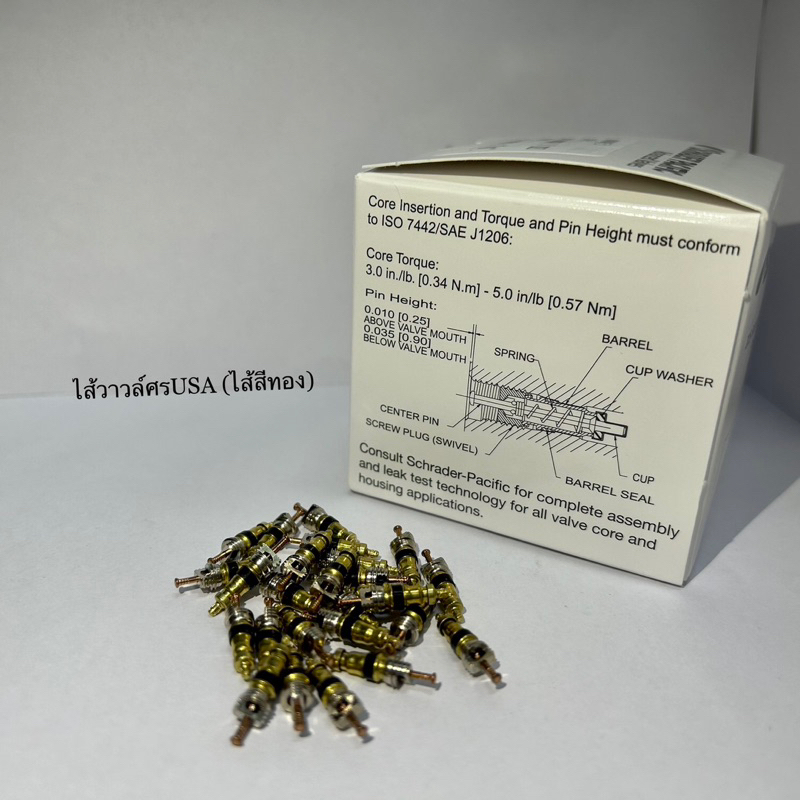 ไส้วาวล์ลูกศร 1/4 (ไส้ธรรมดา(สีเงิน), ไส้USA O-ring HNBR(สีเขียว) ,ไส้USA (สีทอง)) (1 แพ็ค 5 ตัว)