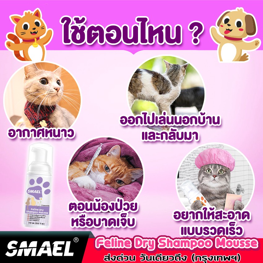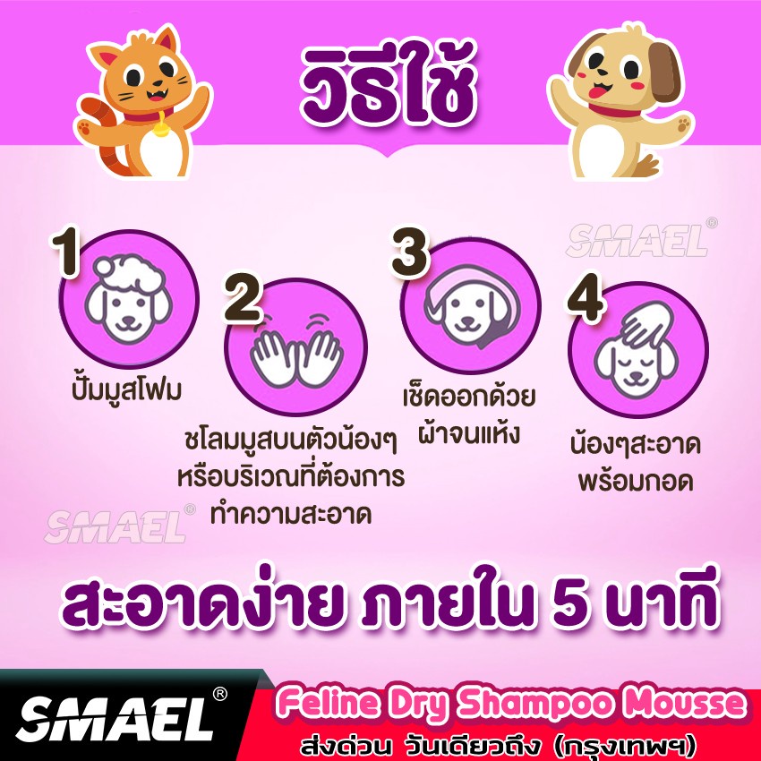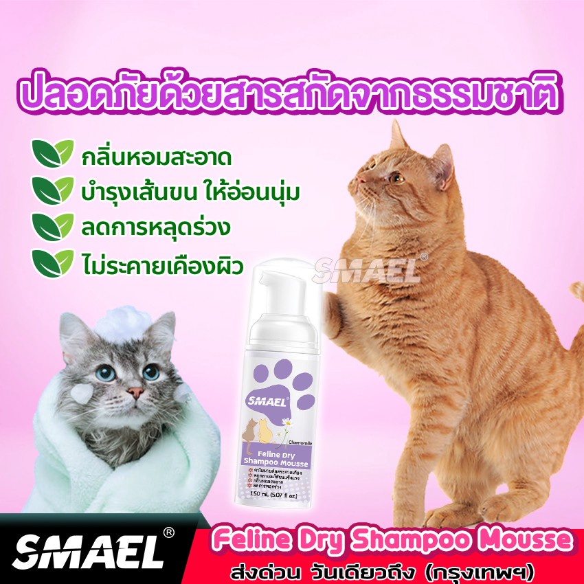SMAEL Pet ของแท้!! มูสโฟมอาบน้ำแห้ง แชมพูอาบน้ำแห้งแมว 150 ml. สูตรอ่อนโยน กลิ่นหอม ลดอาการคัน สัตว์เลี้ยง S004 ^SA