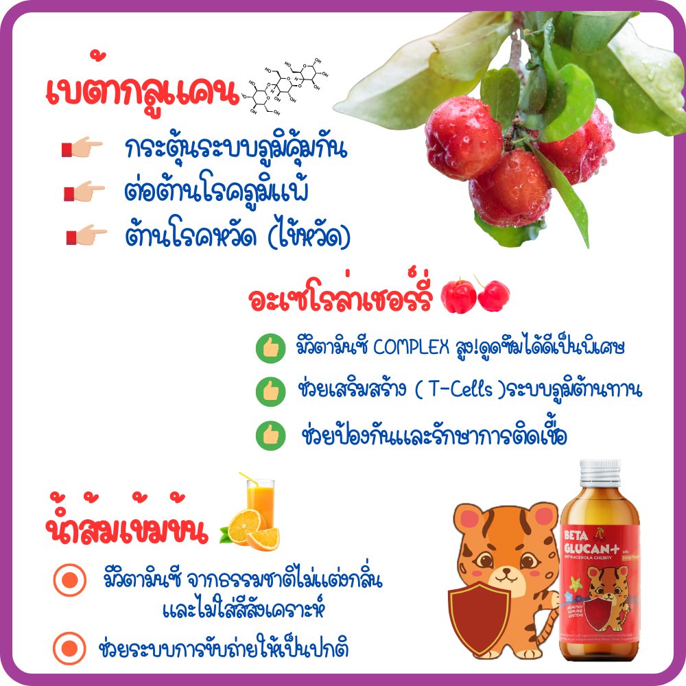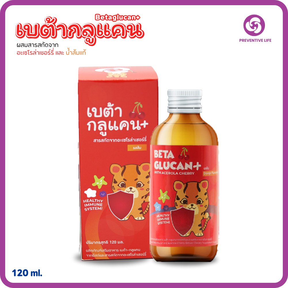 เบต้ากลูแคนพลัสสำหรับเด็ก 120มล. สูตรเสริมภูมิคุ้มกันแถมฟรี! ฟริสซีคละรส 1ซอง