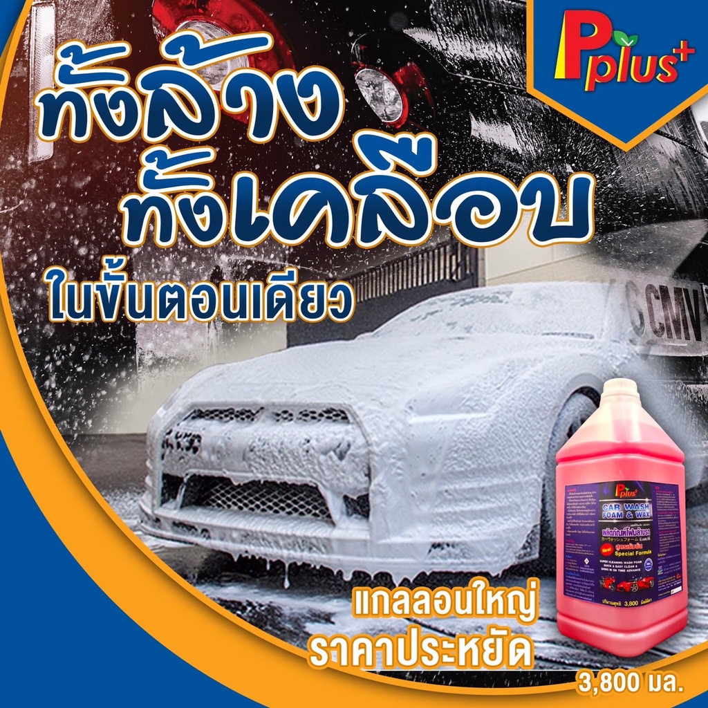 โฟมล้างรถ CAR WASH FOAM&WAX Pplus+,#น้ำยาล้างรถ,#โฟมล้างรถผสมWAX