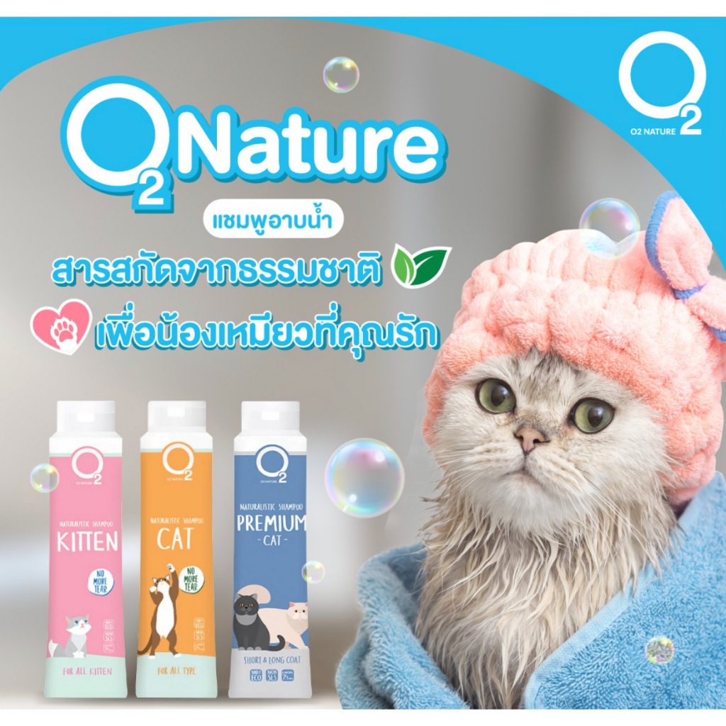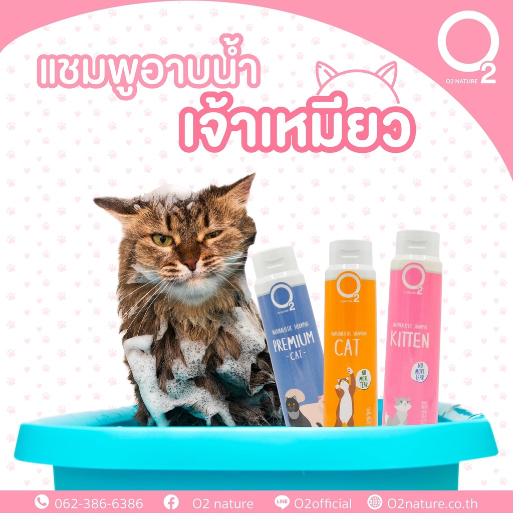 ขวดใหญ่ O2 Shampoo โอทู แชมพูแมว Cat Kitten Premium Cat จัดการเชื้อรา ยีสต์ ไขมัน ดับกลิ่นตัวหลายวัน