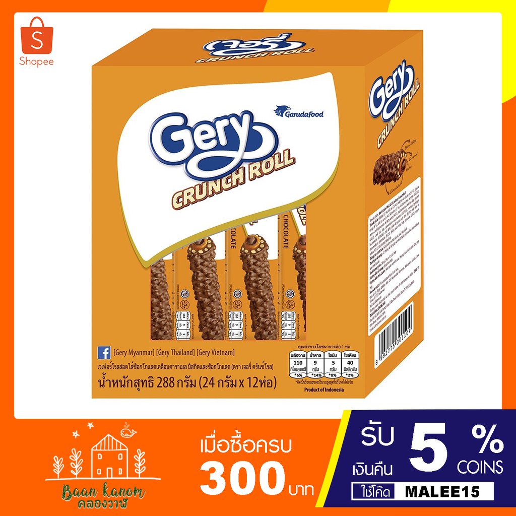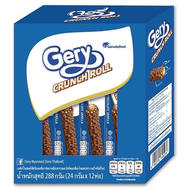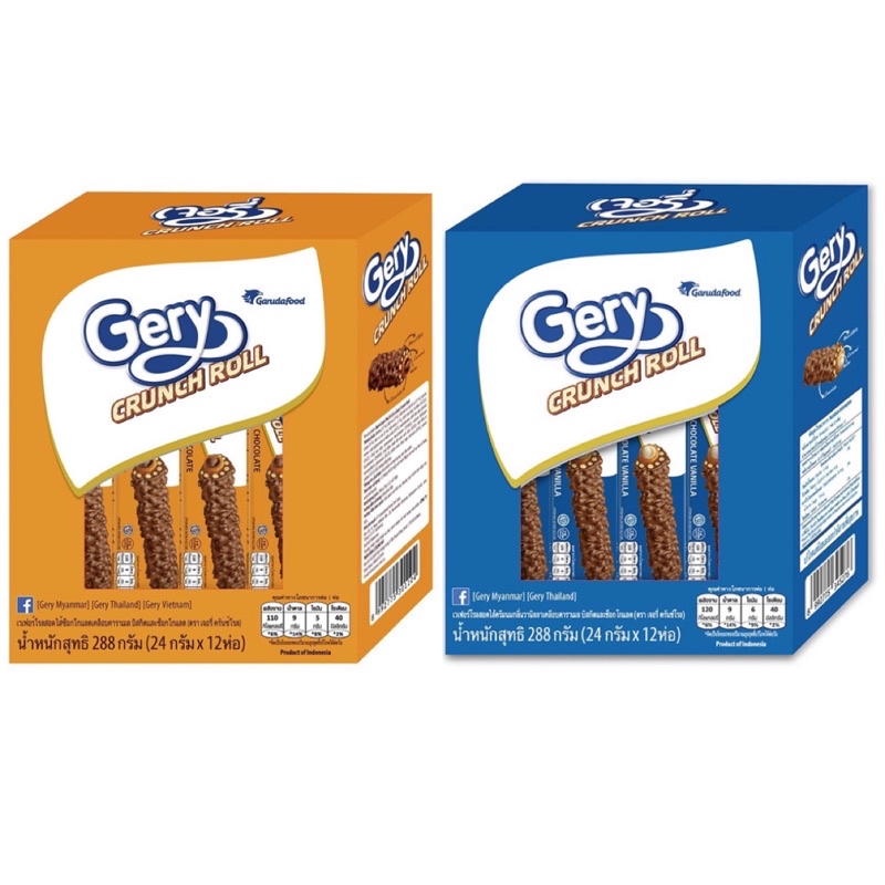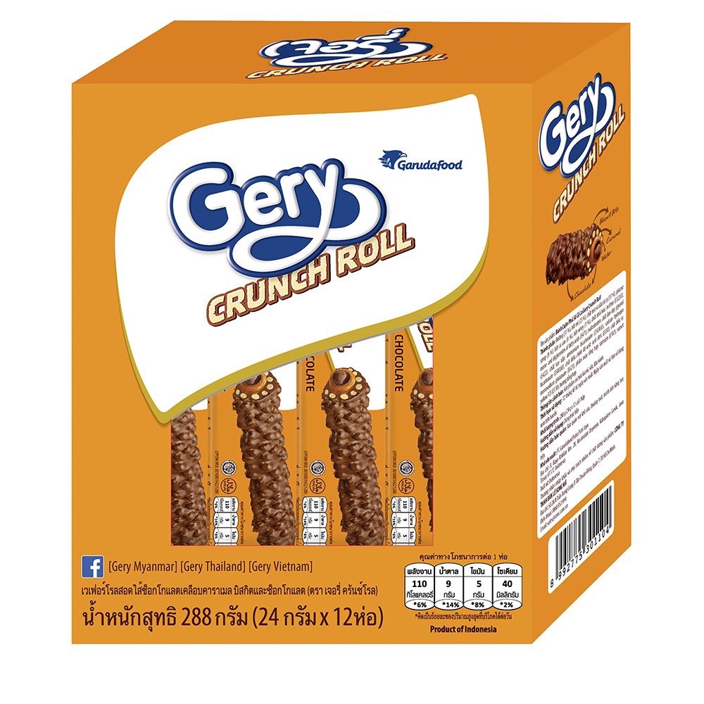 GERY เจอรี่ ครันช์โรล 24 ก.12 ห่อ รสช็อกโกแลต เคลือบคาราเมล