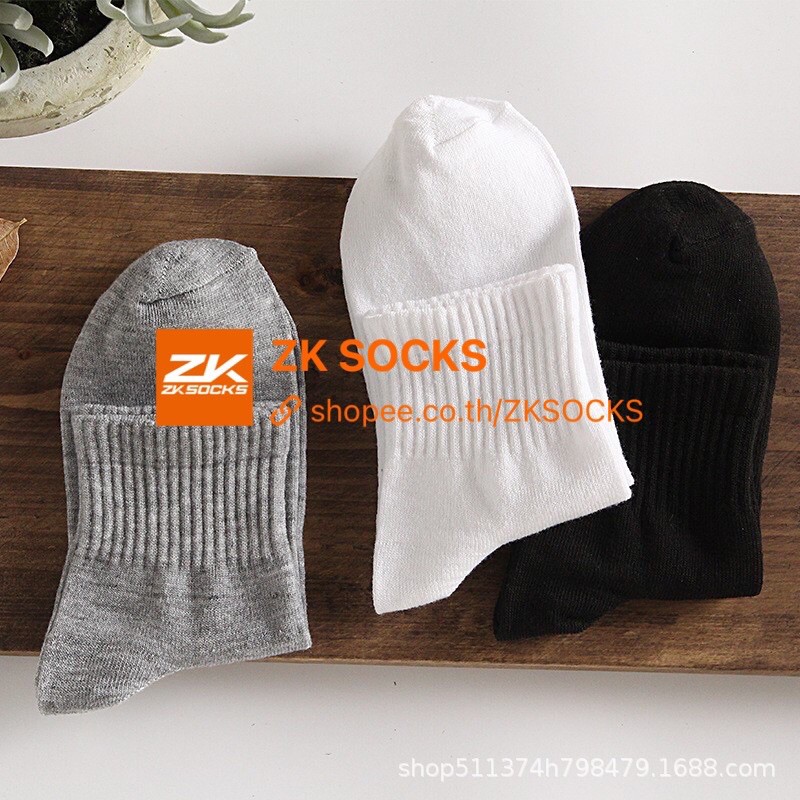 ถุงเท้าข้อกลาง ถุงเท้างานไทย คุณภาพดี พร้อมส่ง🧦 ดำ ขาว เทาZKSOCKS