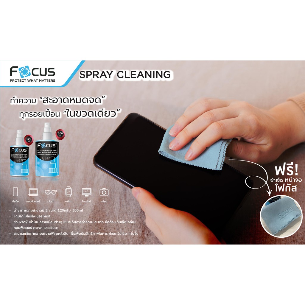 น้ำยาทำความสะอาดหน้าจอ Screen Cleaning Spray Focus ขนาด 120ml 200ml ฟรี!! ผ้าไมโครไฟเบอร์ !! น้ำยา โฟกัส
