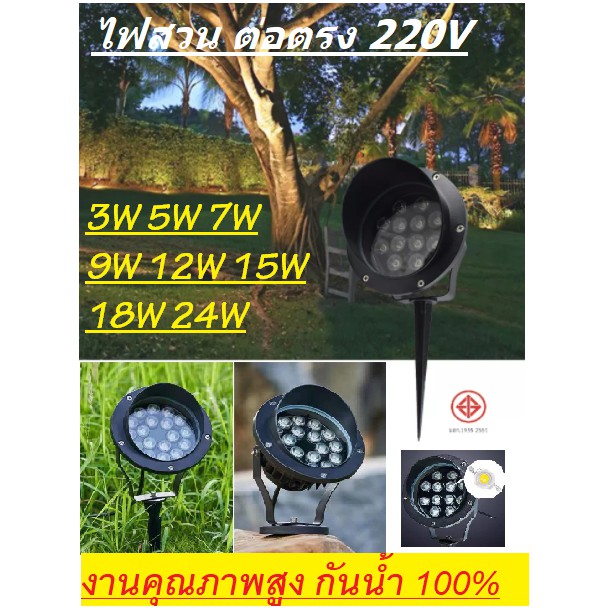 ไฟปักสวน 24w 18w 12w 9w ไฟส่องต้นไม้ LED กันน้ำ กันฝน งานสเปค โครงสร้างอลูมิเนียมหนา ทนแดด ต่อไฟตรง 220v SMD เน้นกระจาย