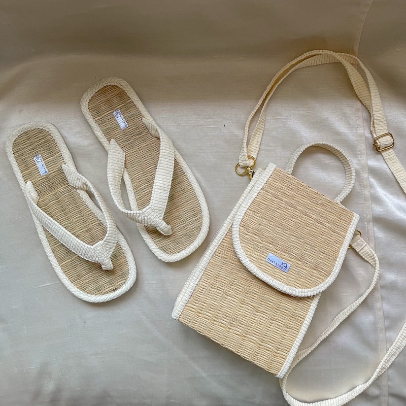 Sedge Sandals - รองเท้าหูหนีบ เสื่อกกผ้าลูกฟูกมินิมอล + ผ้าอินเดีย