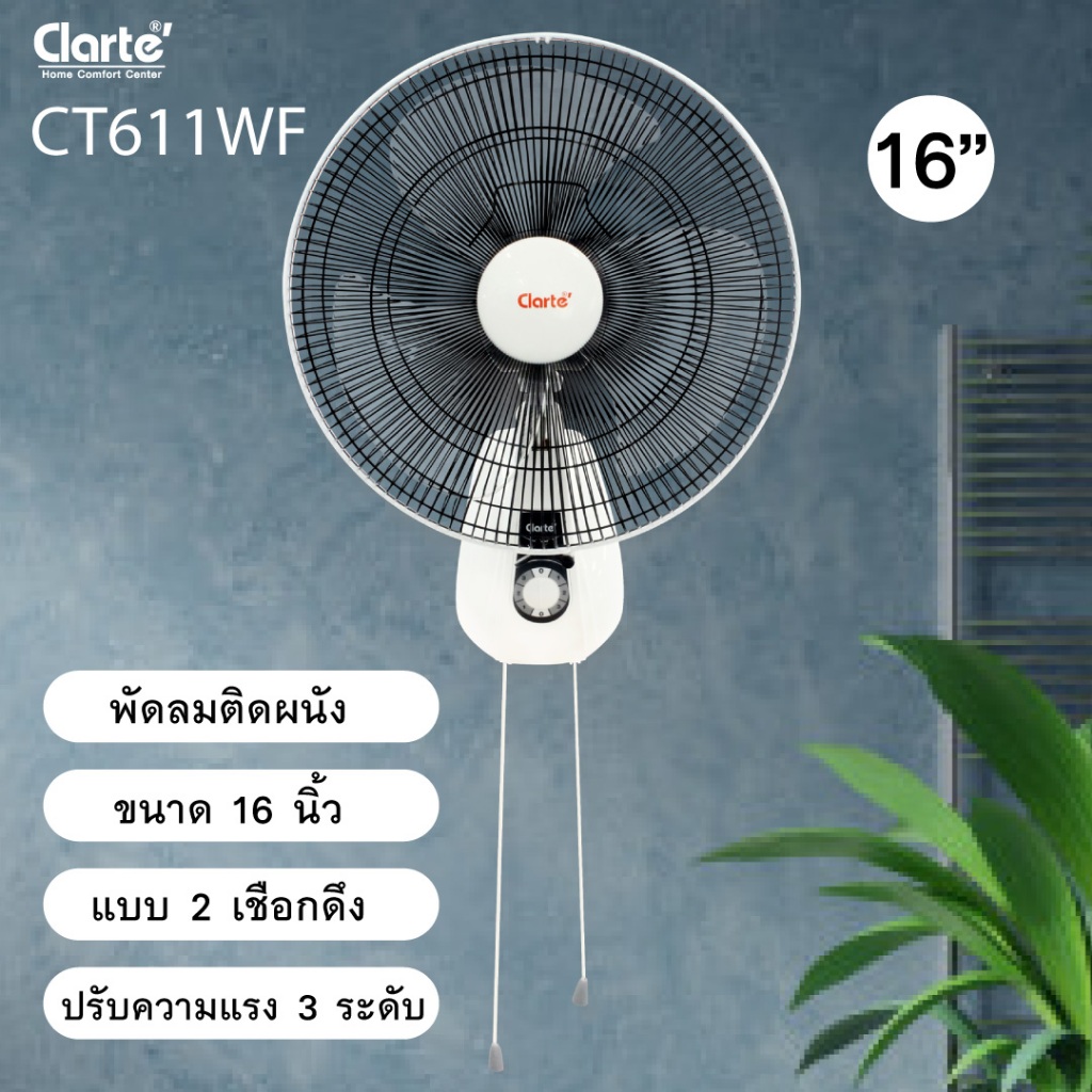 ๋Jaymarketพัดลมติดผนัง16นิ้วแบบ2เชื่อกClarte'รุ่นCT-611WFมอเตอร์57วัตต์สีขาว