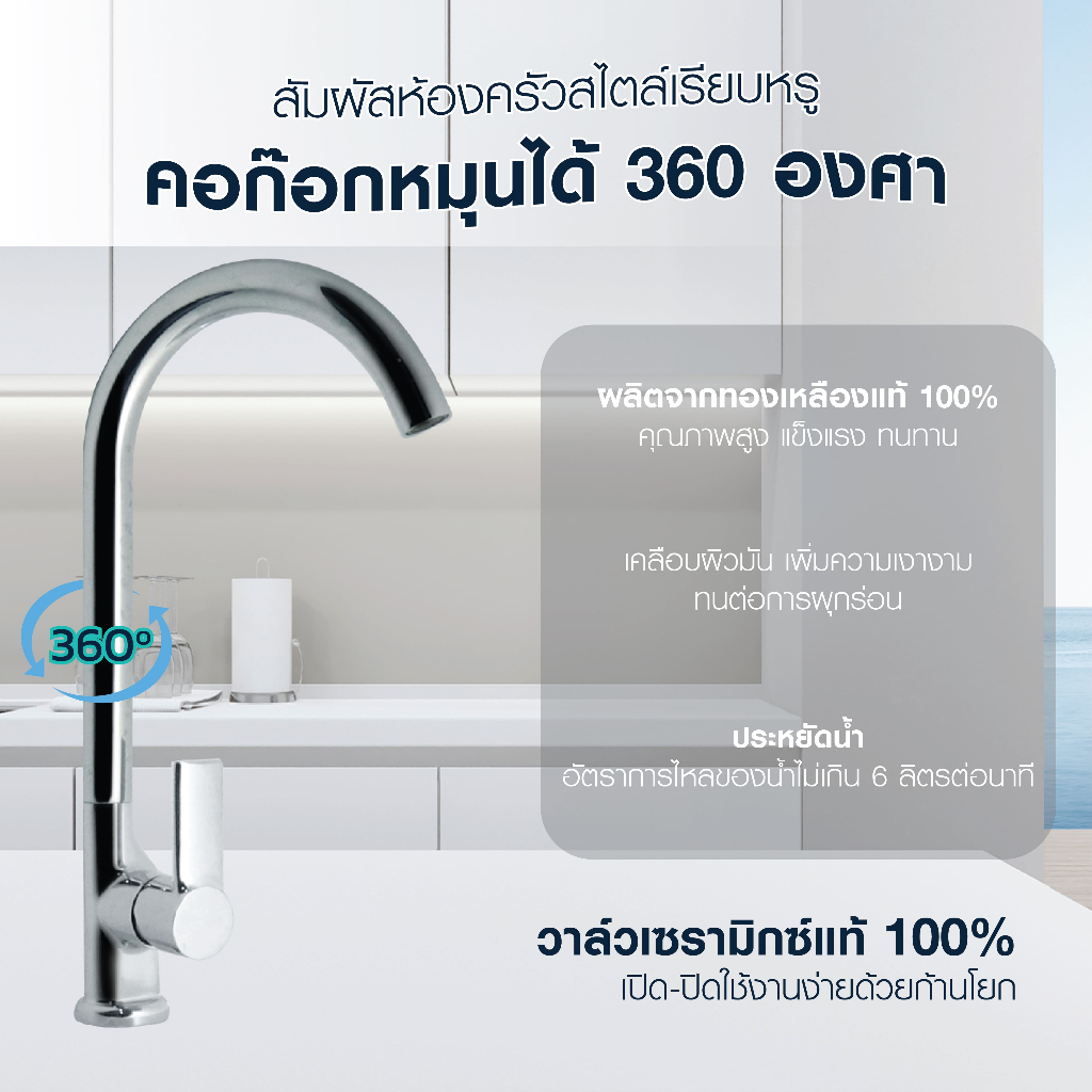 HONS Bathroom ก๊อกซิงค์เคาน์เตอร์ เดี่ยว รุ่น FC1008 สีโครม รับประกันสินค้า 1 ปี