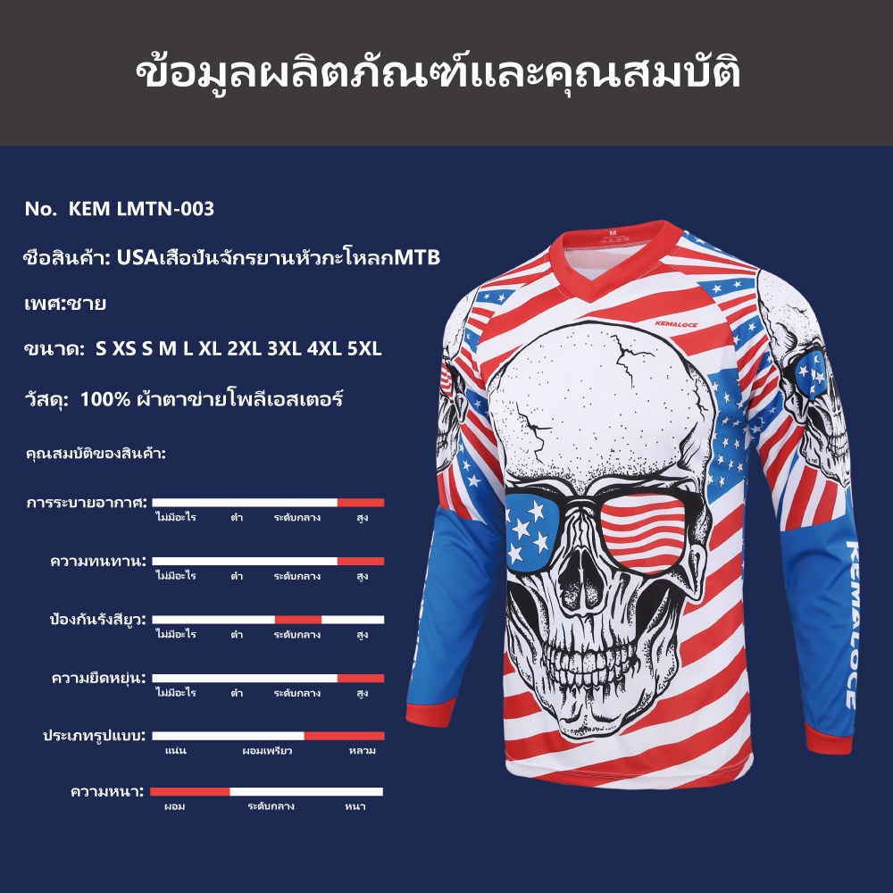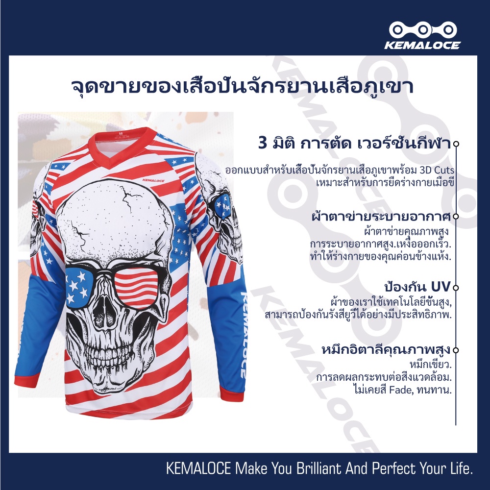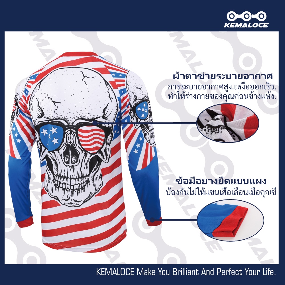 KEMALOCE USAเสื้อวิบาก ผู้ชายMTBแดงยาวเสื้อมอเตอร์ไซค์วิบาก กะโหลกศีรษะแข่งรถขี่เสื้อมอเตอร์ไซค์บิ๊กไบค์