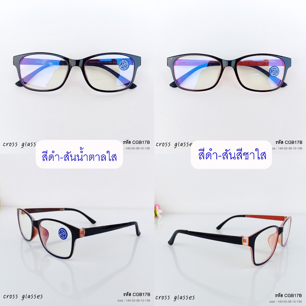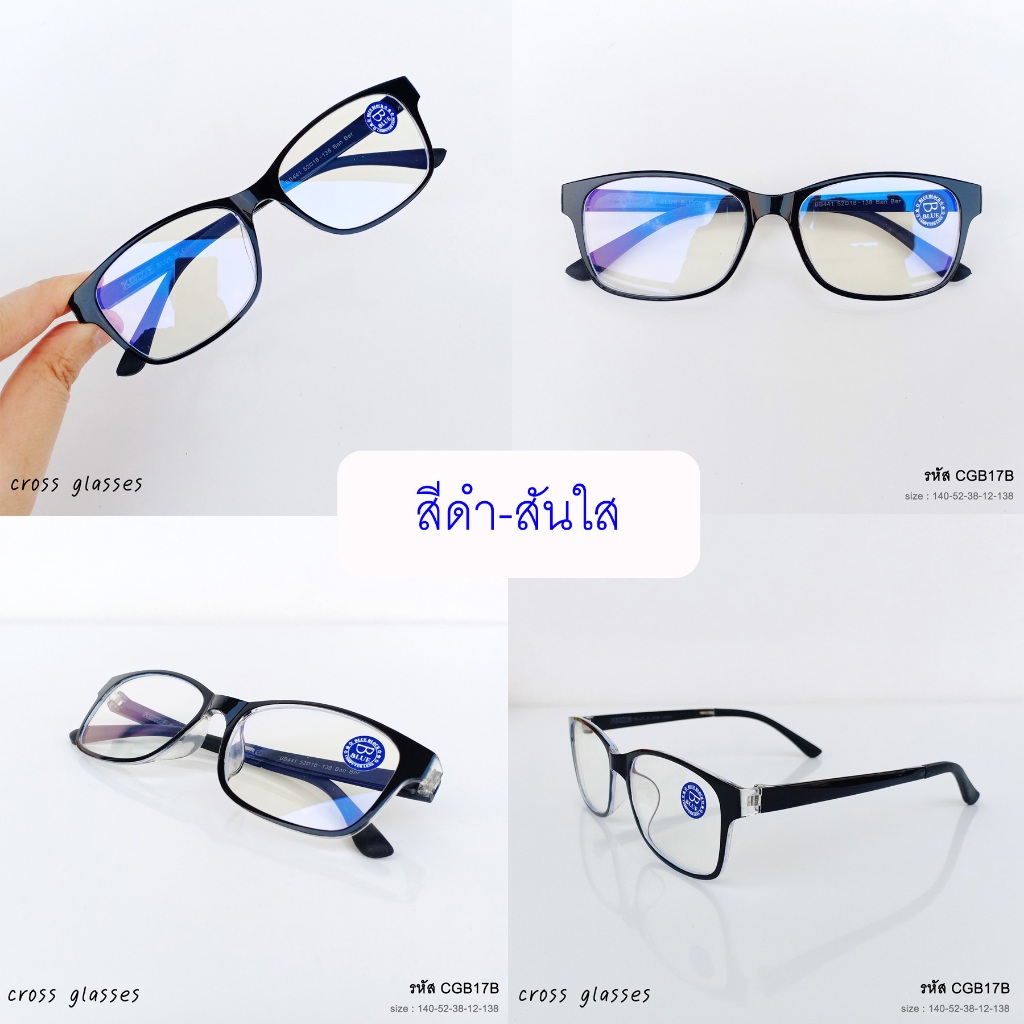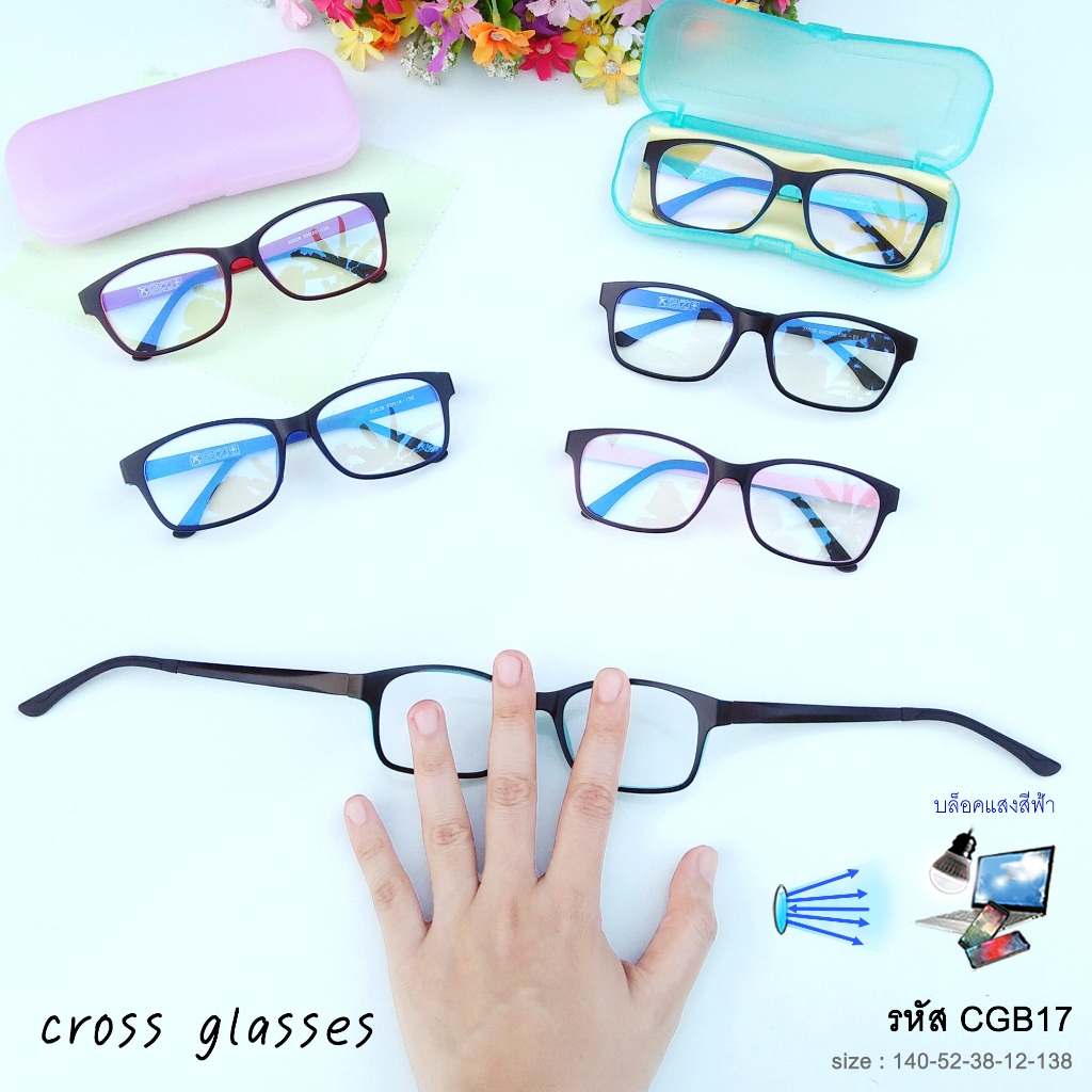 แว่นกรองแสงสีฟ้า เลนส์บลูบล็อคแท้ ทรงเหลี่ยม ดัดงอได้ รหัส CGB17 พร้อมกล่อง+ผ้าเช็ดเลนส์