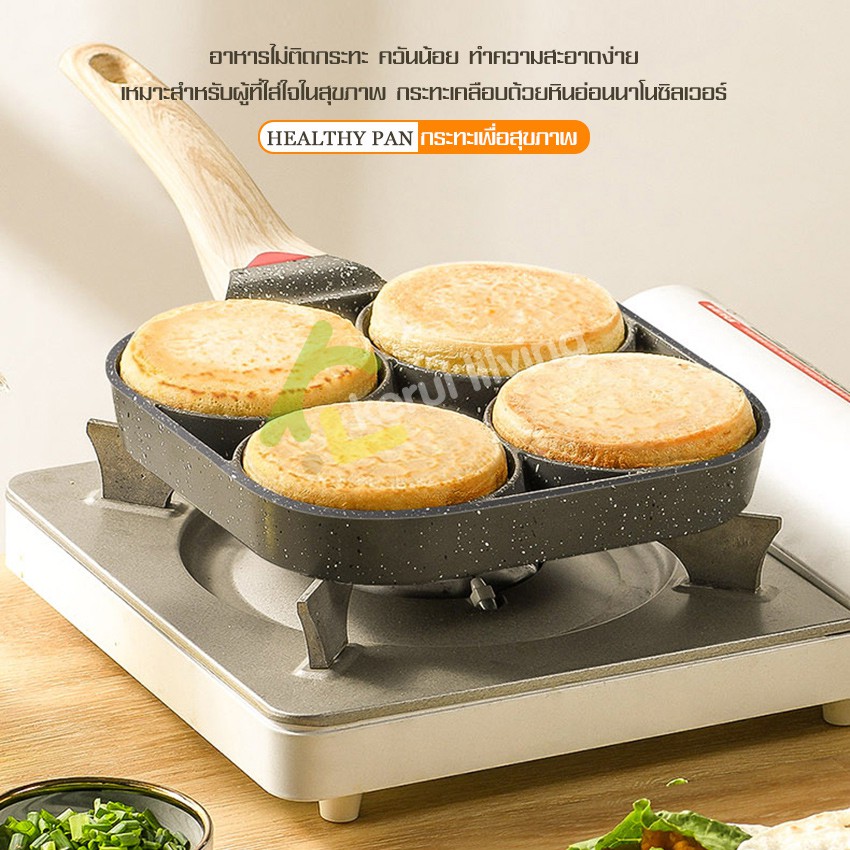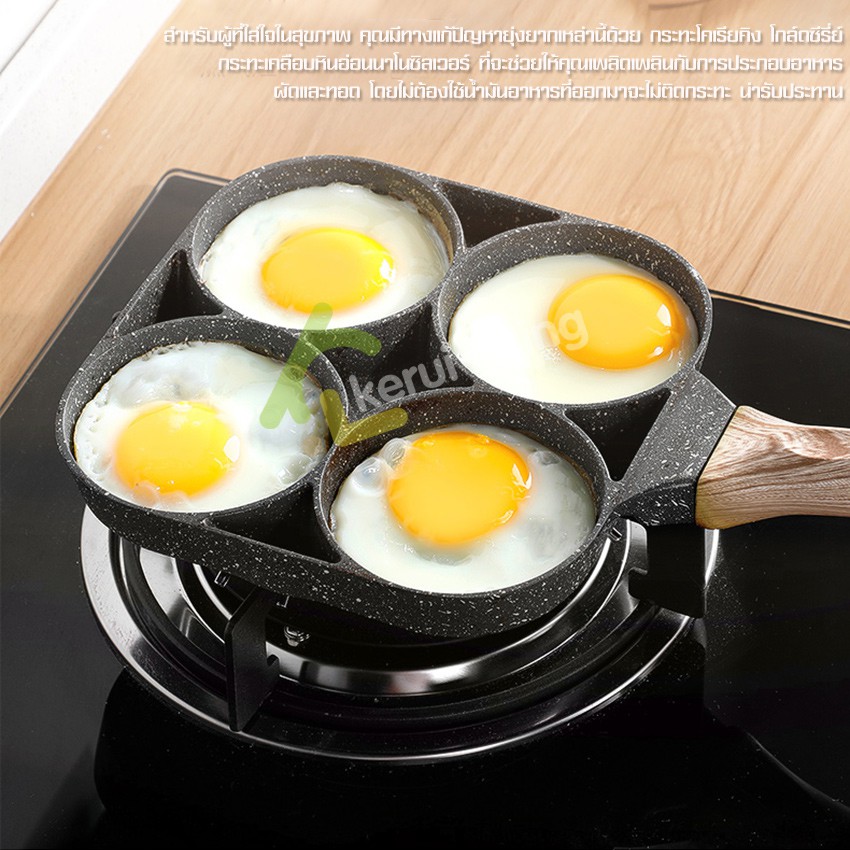 RYBACK กระทะทอดไข่ 4 หลุม กระทะทอดไข่ดาว ทอดแฮม กระทะแพนเค้ก กระทะออมเล็ต ทำอาหารเช้า pan ทำความสะอาดง่าย