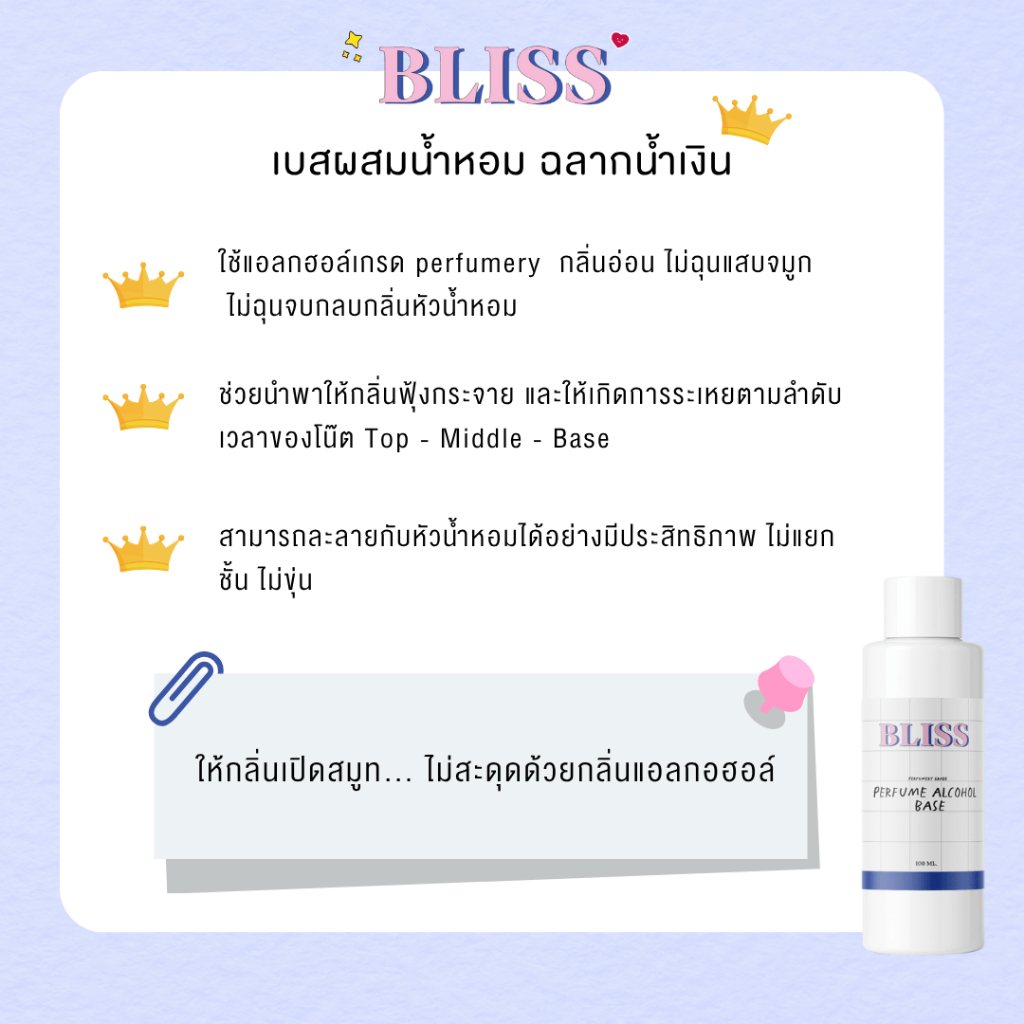เบสผสมน้ำหอมฉีดตัว เกรด มงกุฏ BLISS - 100 ML // 250 ML // 1000 ML (PERFUME ALCOHOL BASE) กลิ่นอ่อน ฺ
