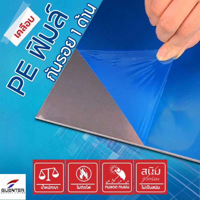 แผ่นอลูมิเนียม 1 mm เกรด 1100 หลายขนาด (สั่งตัด,พับ,เจาะได้) เคลือบฟิล์ม PE กันรอยให้ 1 ด้าน [PLA1]