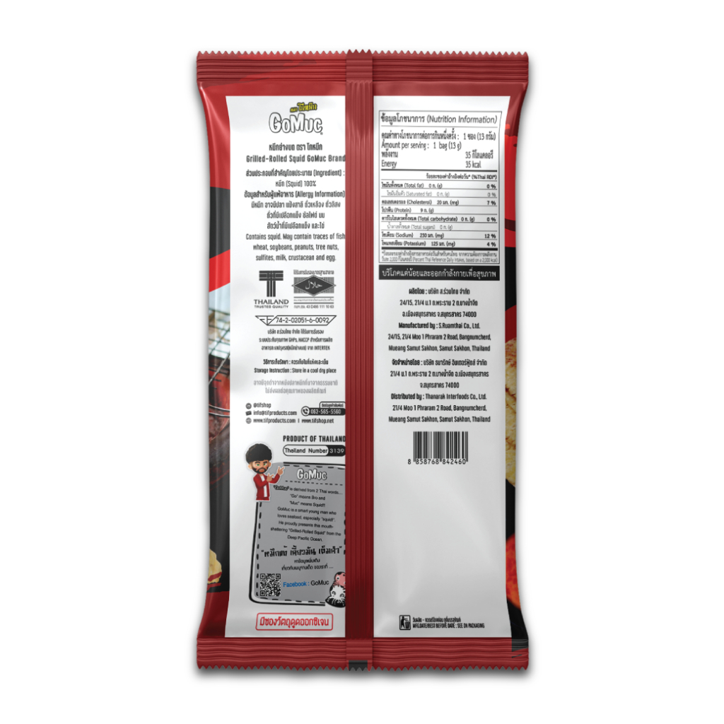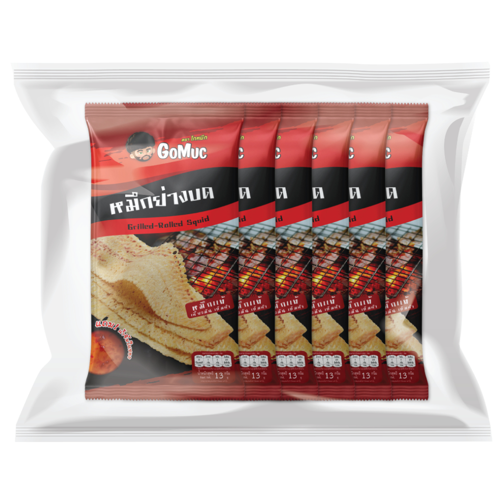 [แพ็คสุดคุ้ม 6 ซอง] GoMuc โกหมึก หมึกย่างบด 13 กรัม Grilled Rolled Squid