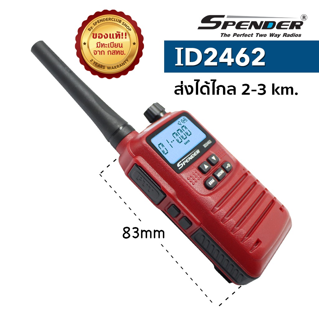 SPENDER วิทยุสื่อสาร รุ่น ID2462 สีแดง กำลังส่ง 0.5 วัตต์ เครื่องมีทะเบียน ถูกกฎหมาย รับประกันสินค้า 2 ปี