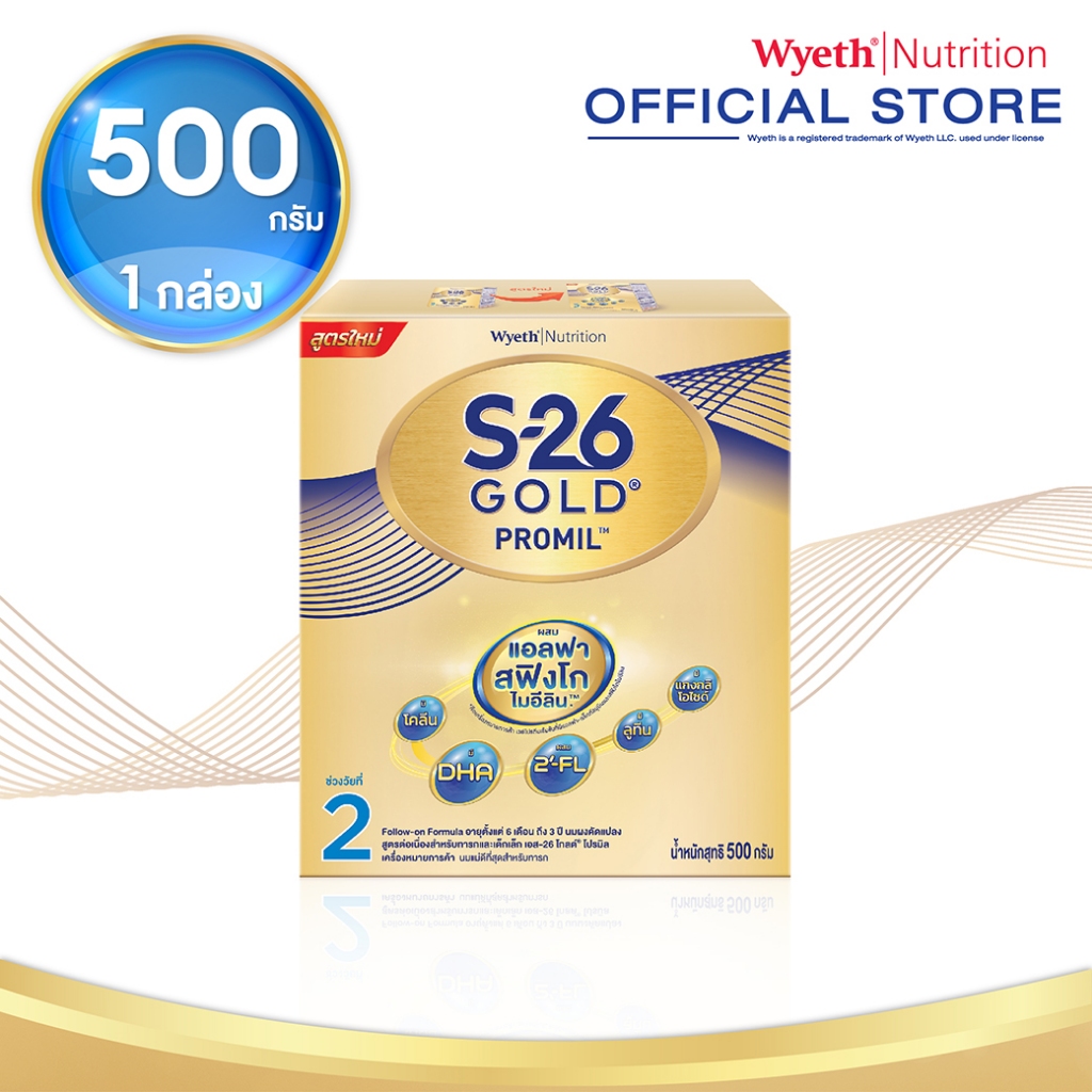 นมผง S-26 GOLD® PROMIL™ (500g) เอส-26 โกลด์® โปรมิล ผสมแอลฟา สฟิงโกไมอีลิน™ สูตร 2 (500 กรัม)