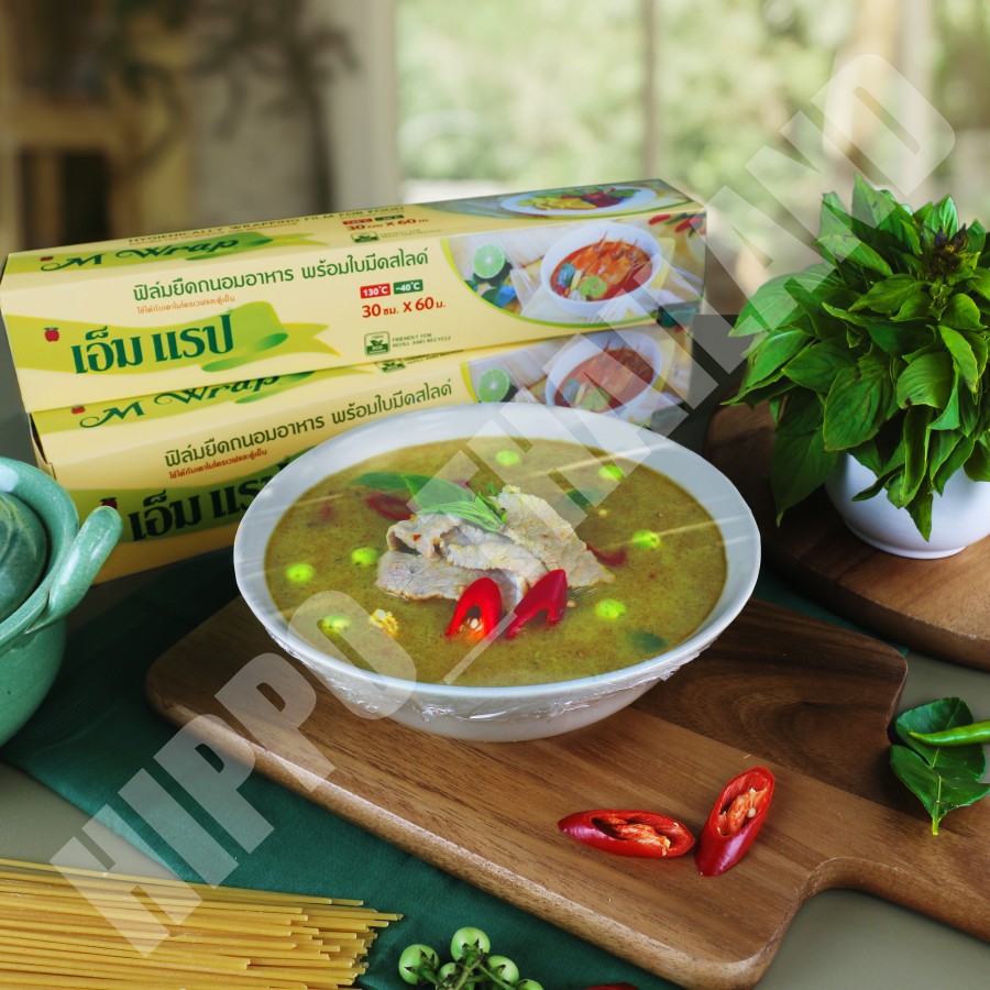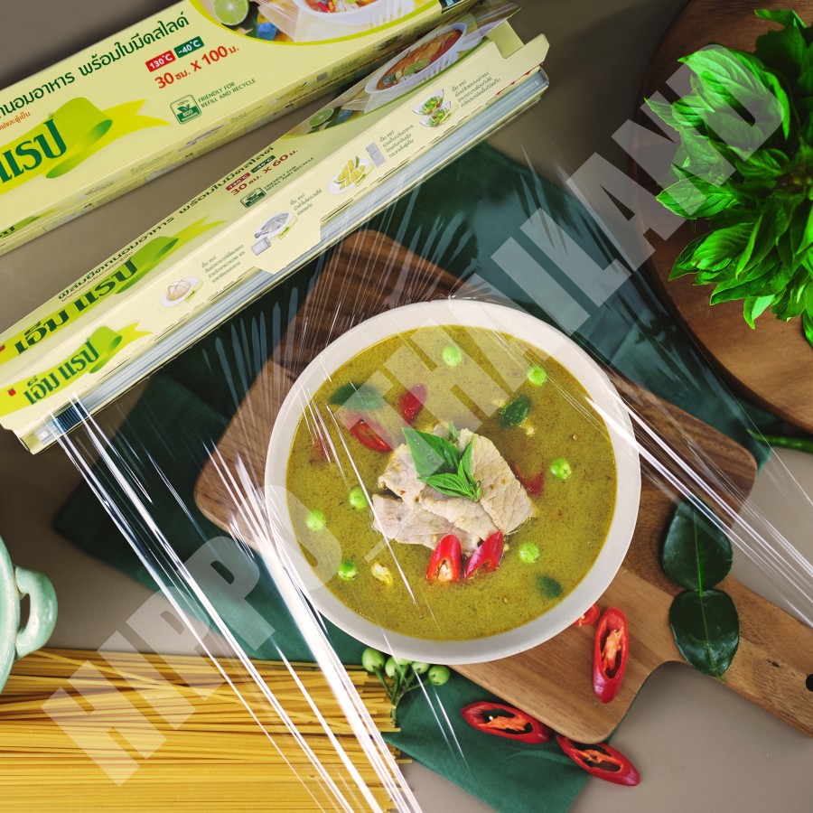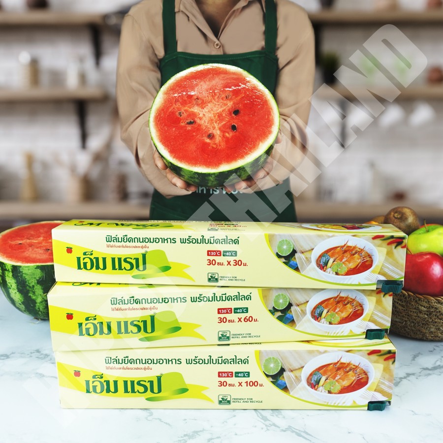 ฟิล์มถนอมอาหาร เอ็มแรป พร้อมใบมีดสไลด์ หน้ากว้าง 30 ซม. x ยาว 100 ม.