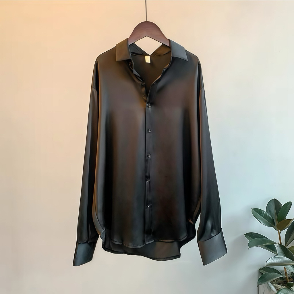 MM001 เสื้อเชิ้ตใส่ทำงาน เสื้้อเชิ๊ตสีดำ แขนยาวผ้าซาติน สไตล์เกาหลี ใส่ทำงาน สำหรับผู้หญิง