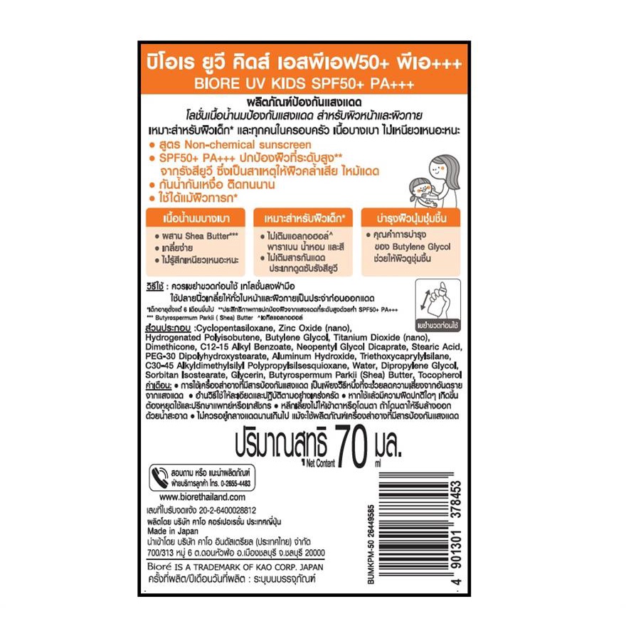Biore UV Smooth Kids Milk SPF50+ PA+++ 70ml
