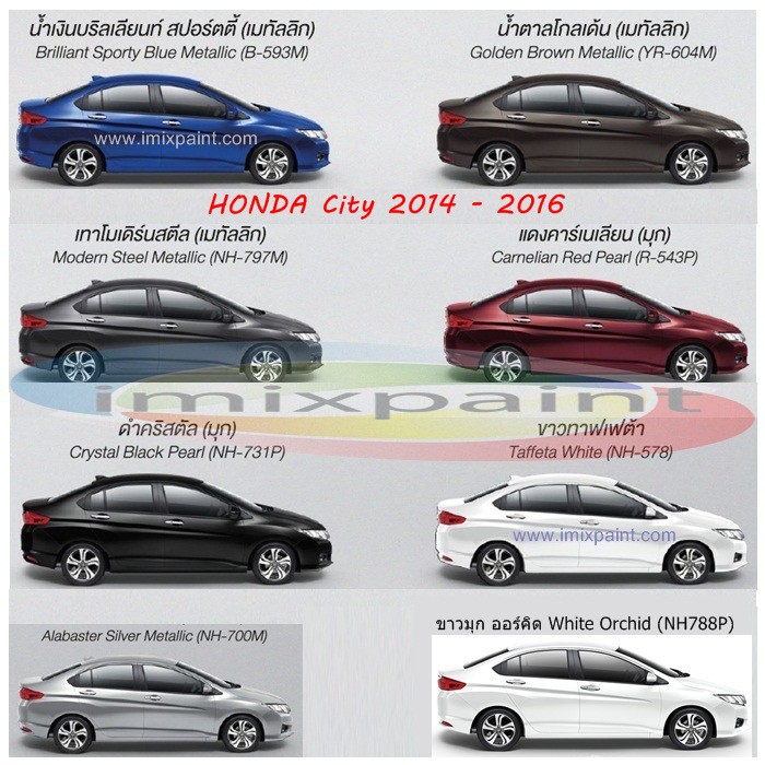 สีแต้มรถ สีซ่อมรถ สำหรับ HONDA CITY ทุกสี แถมฟรี พู่กันแต้มสีและกระดาษทราย สีคุณภาพจาก imixpaint
